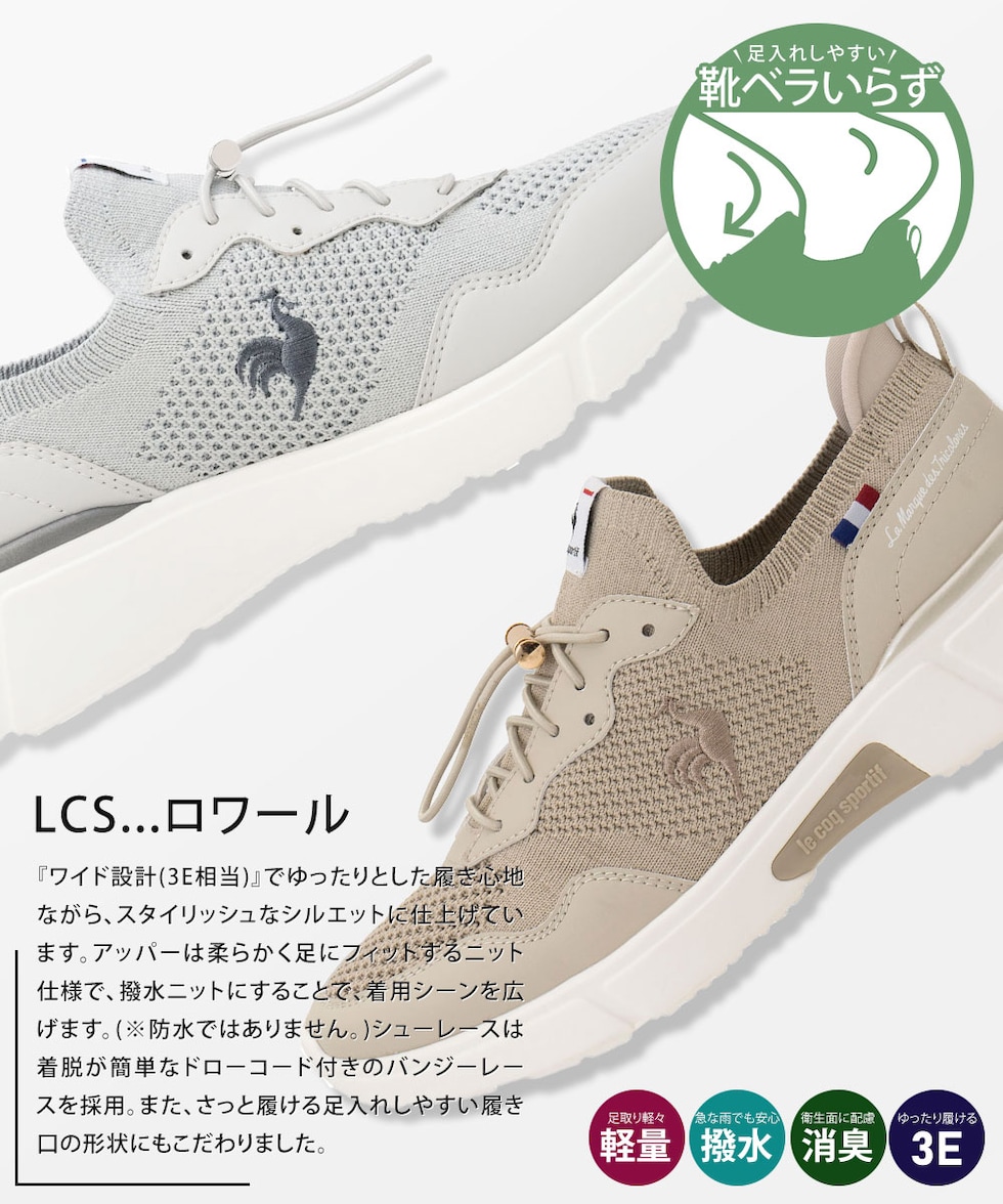 ルコック スポルティフスニーカー レディース ローカット 3E 幅広 撥水加工 消臭 ニット靴 シューズ ランニング スポーツ LCS ロワール le coq sportif