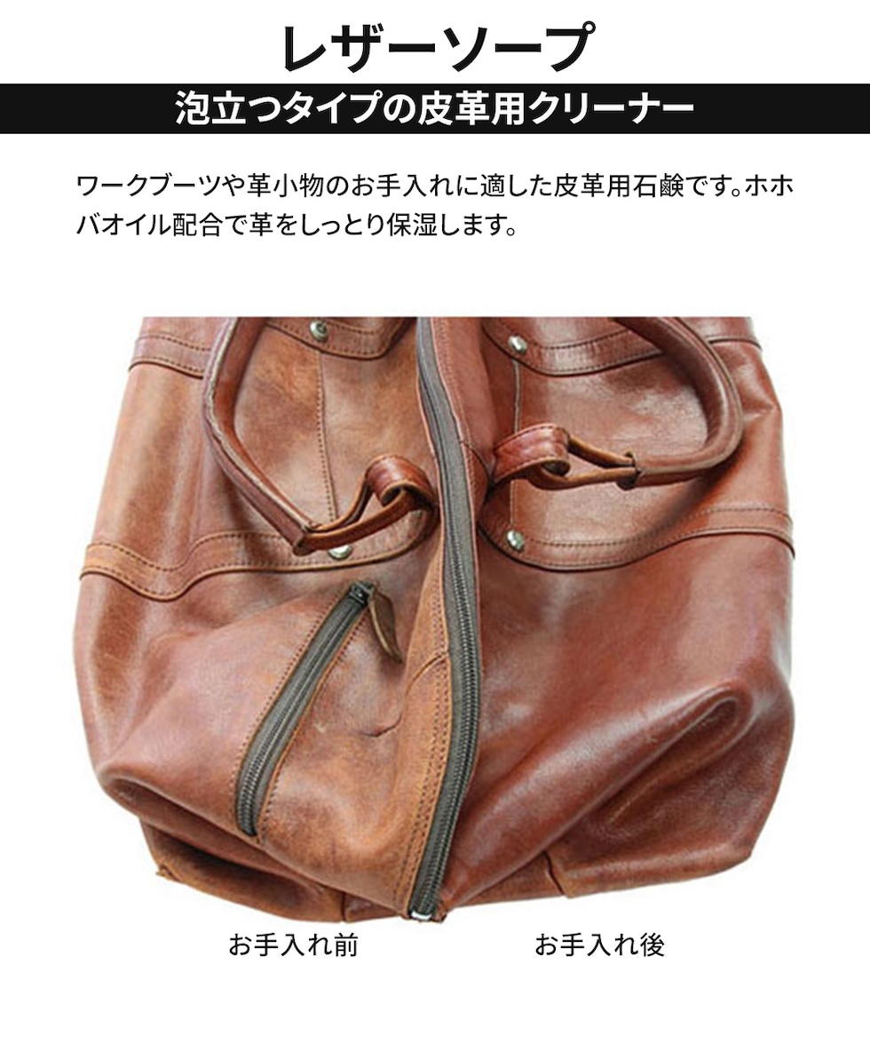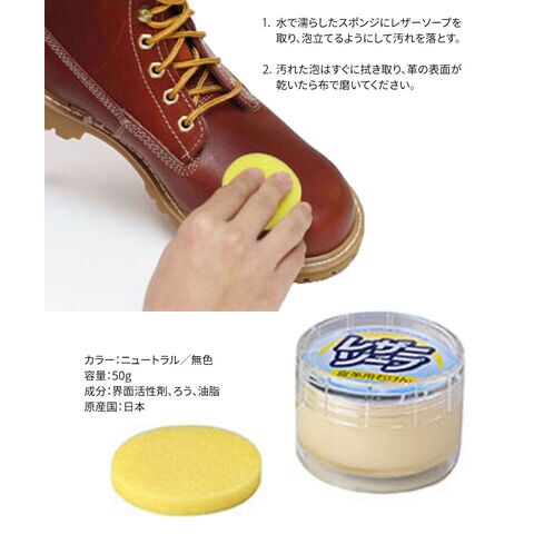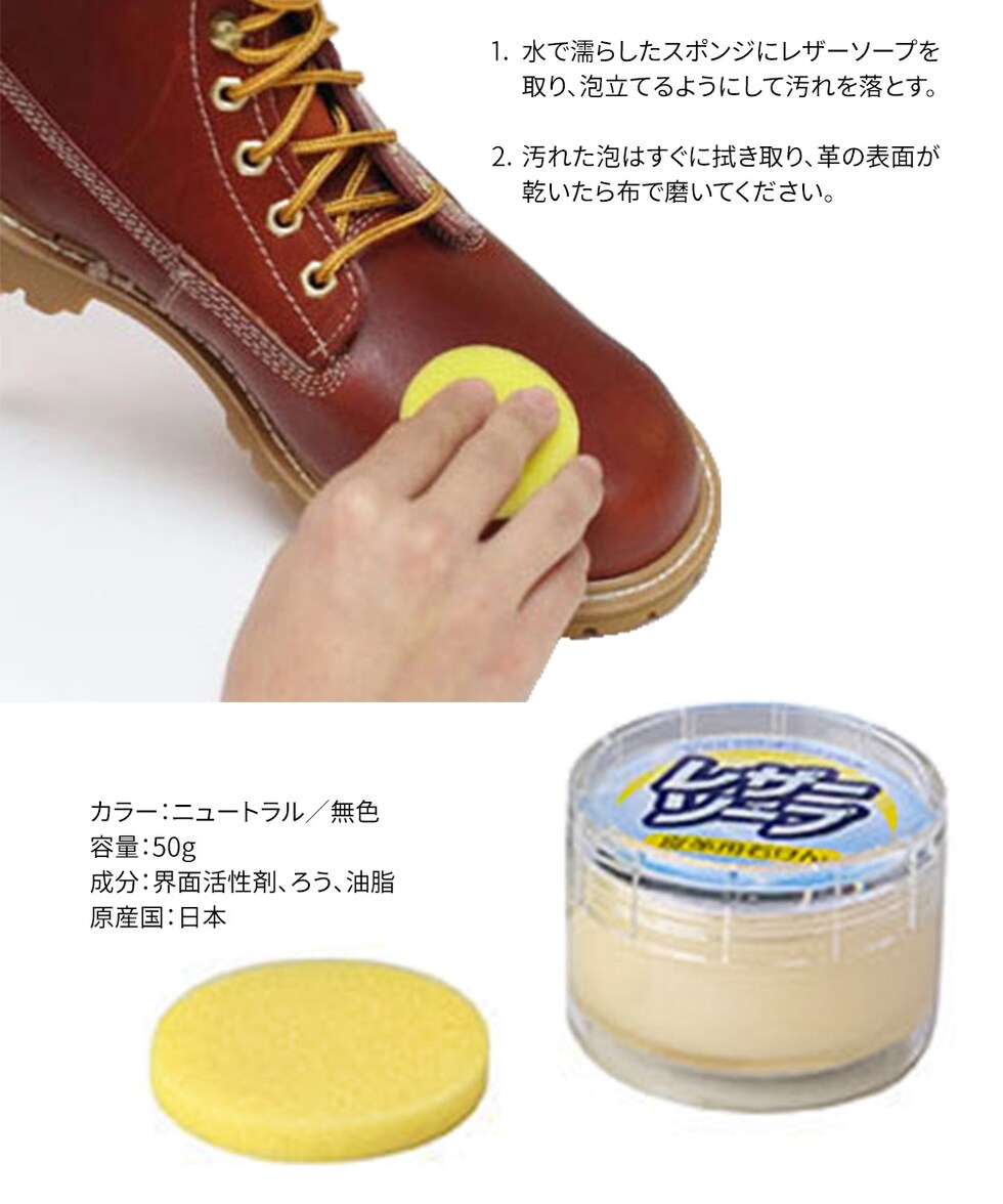 ワークブーツや革小物のお手入れに適した皮革用石鹸です。