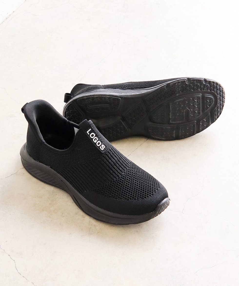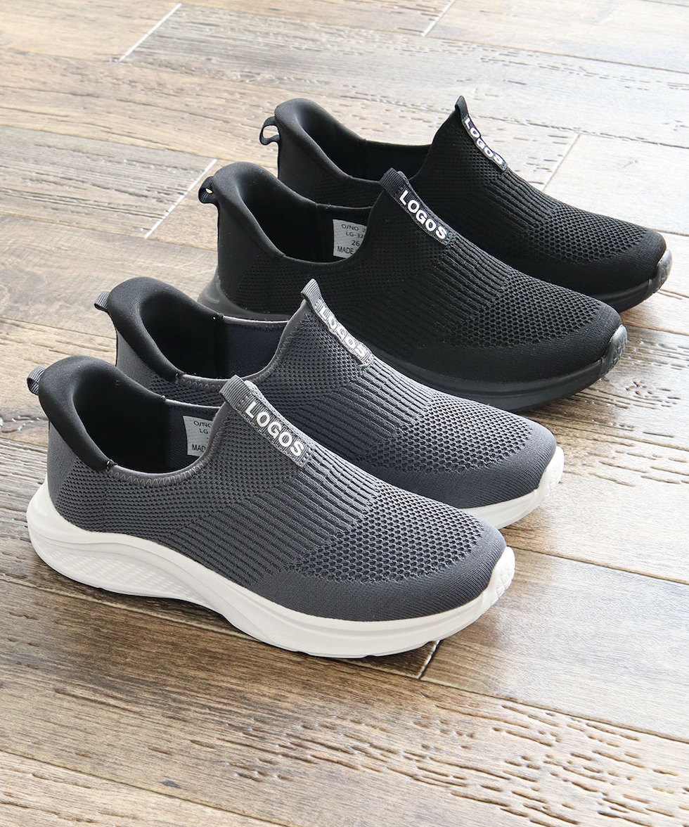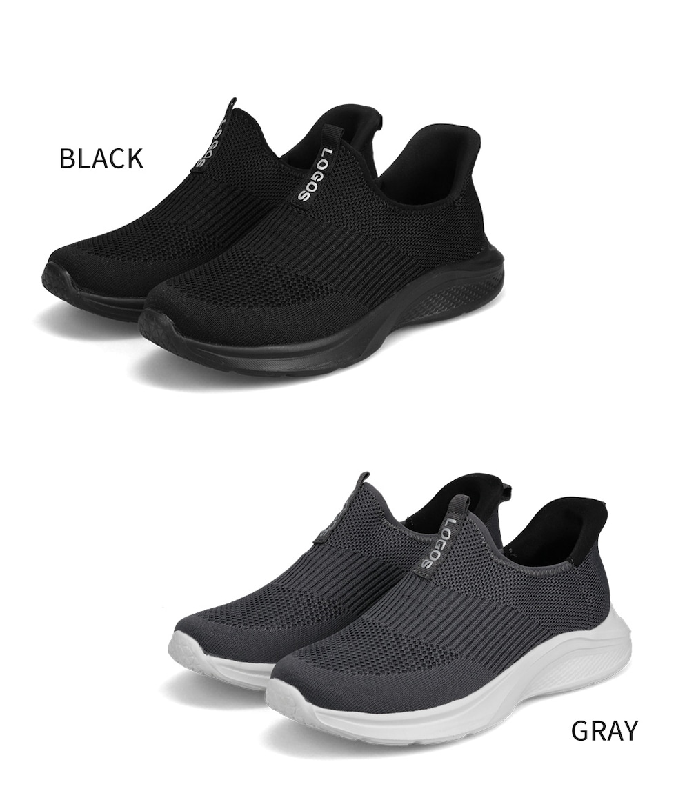 LOGOS メンズ スリッポン 黒 ハンズフリー 立ったまま履ける 手を使わない ニットスニーカー メッシュ ローカット ブラック グレー 3200