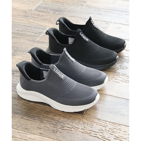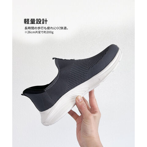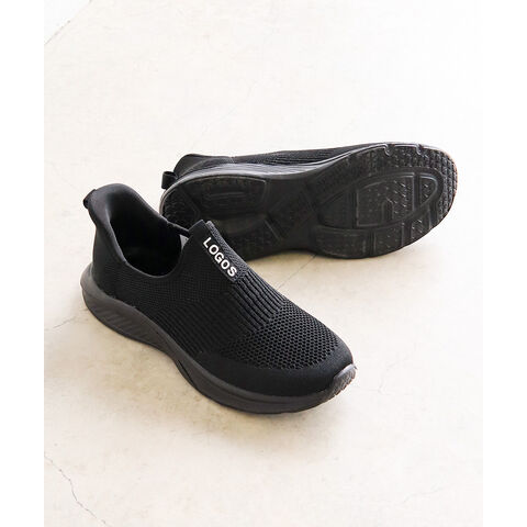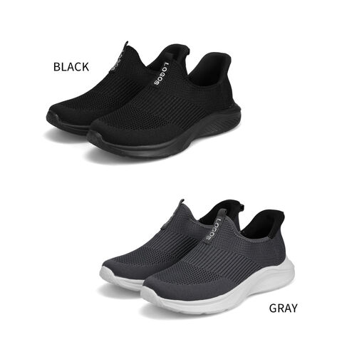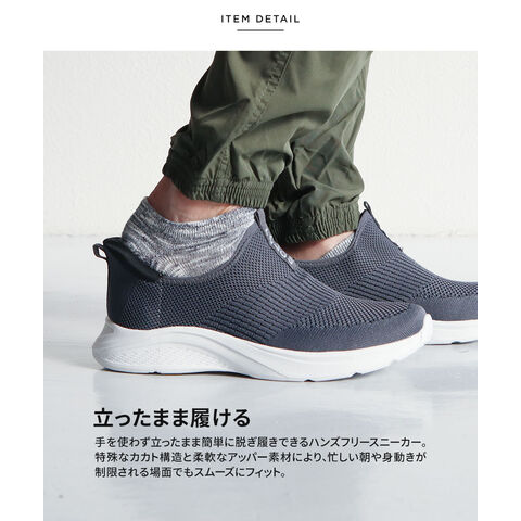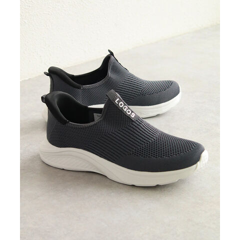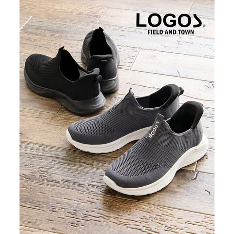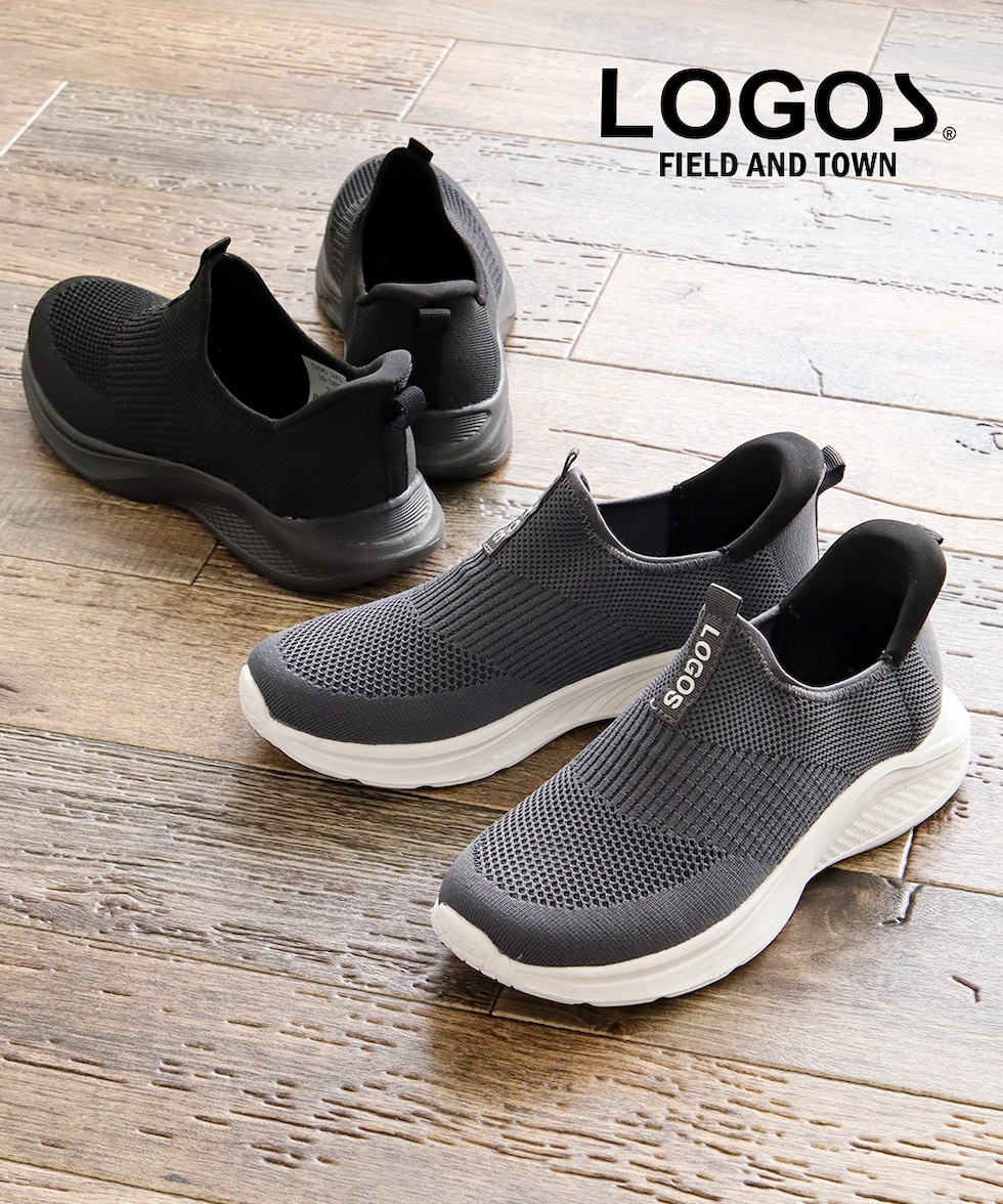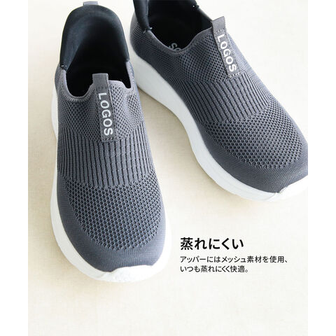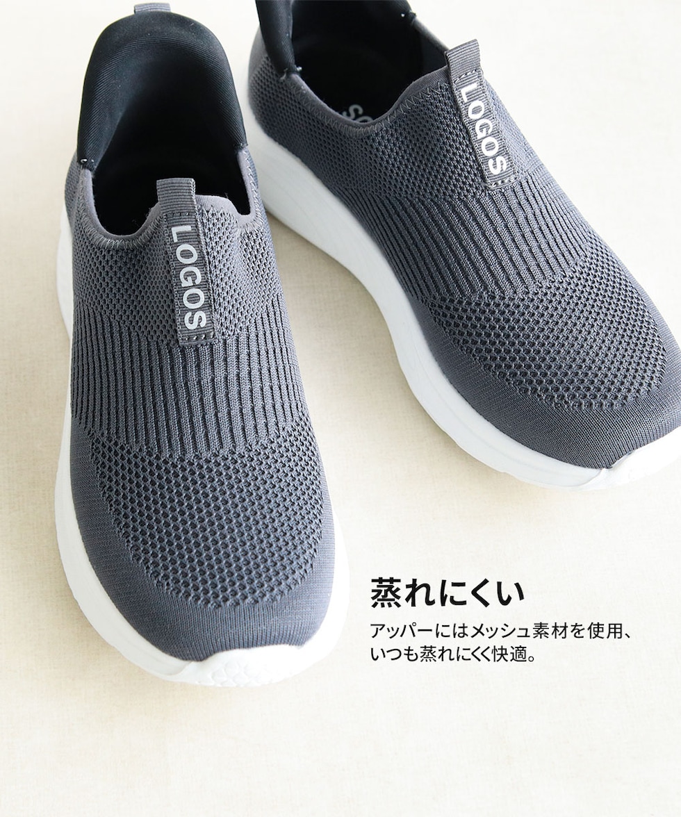 LOGOS メンズ スリッポン 黒 ハンズフリー 立ったまま履ける 手を使わない ニットスニーカー メッシュ ローカット ブラック グレー 3200