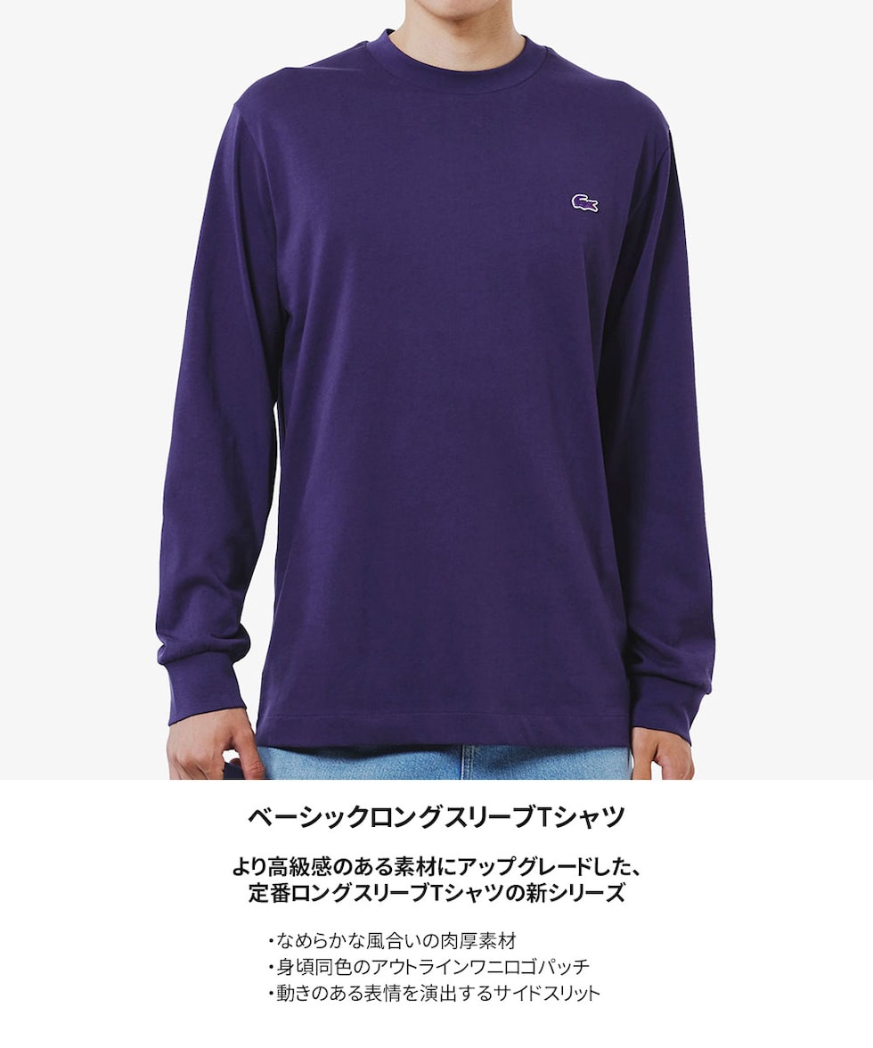 ラコステ Tシャツ メンズ 長袖 クルー ネック ワンポイント トップス カットソー シンプル アウトドア 綿 ベーシック ロングスリーブ TH558399 LACOSTE