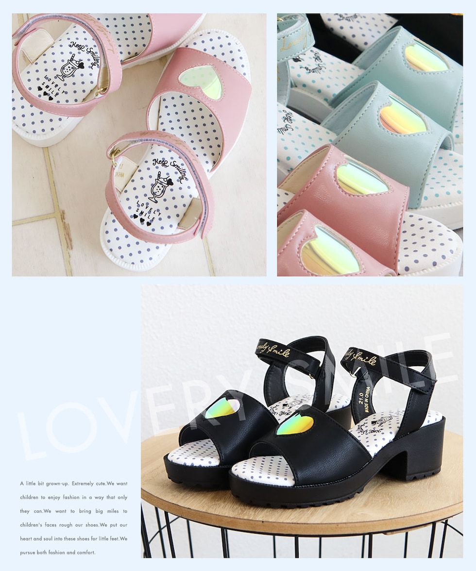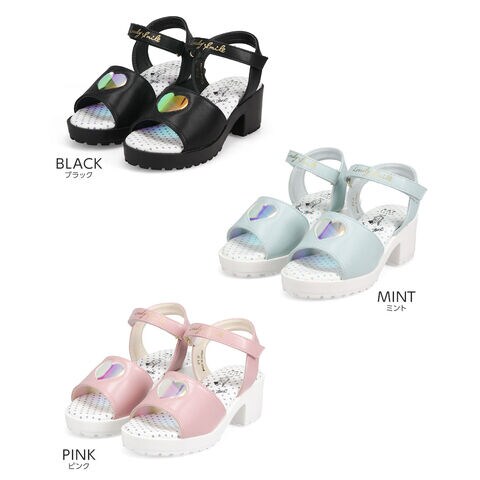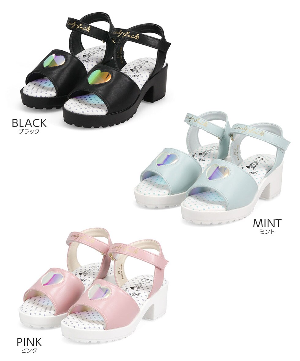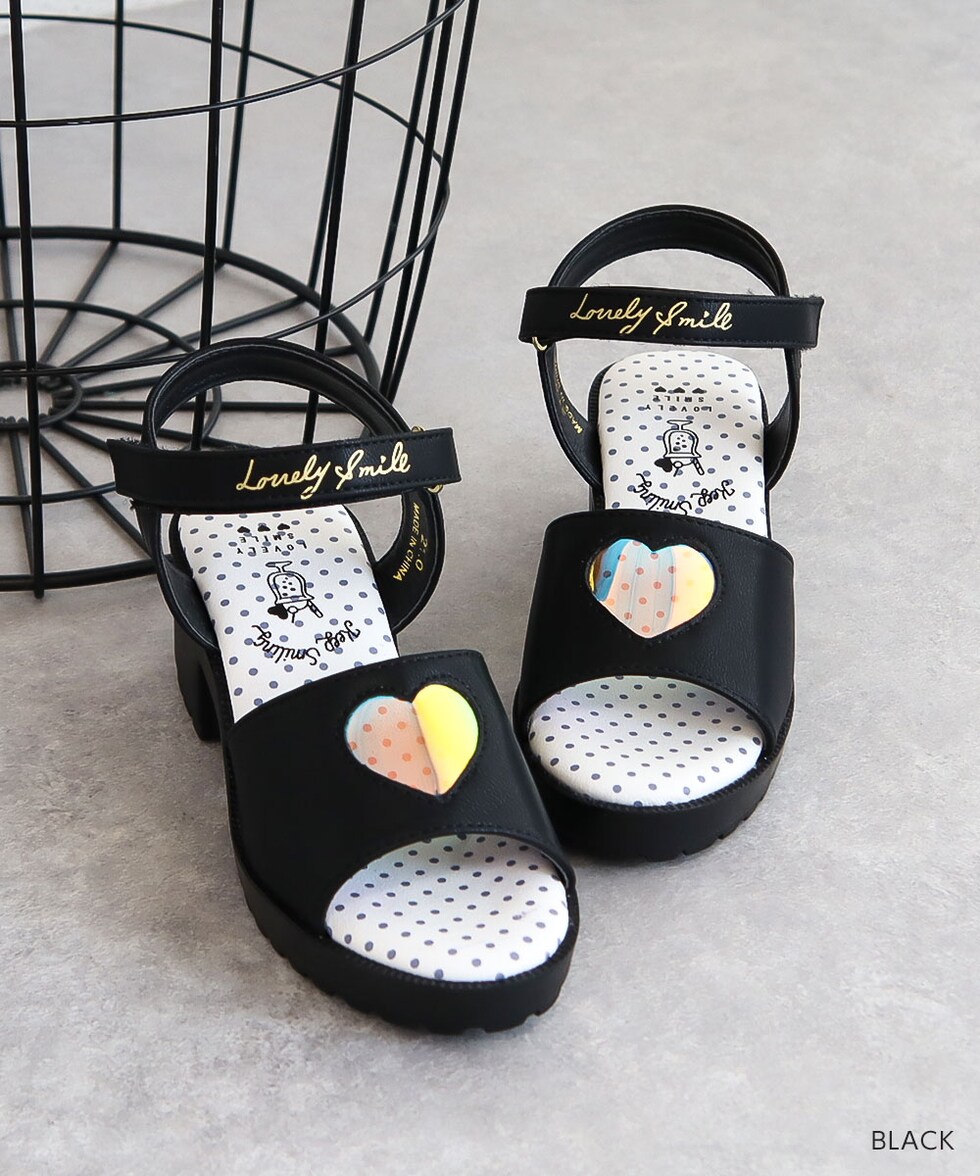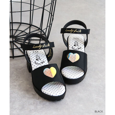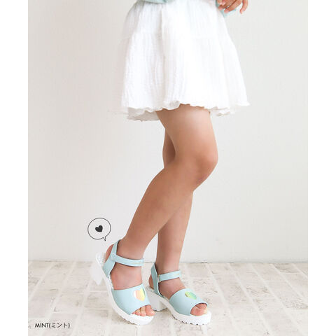 トレンドの厚底デザインに、オーロラ素材のハートマドがかわいらしいサンダルです♪