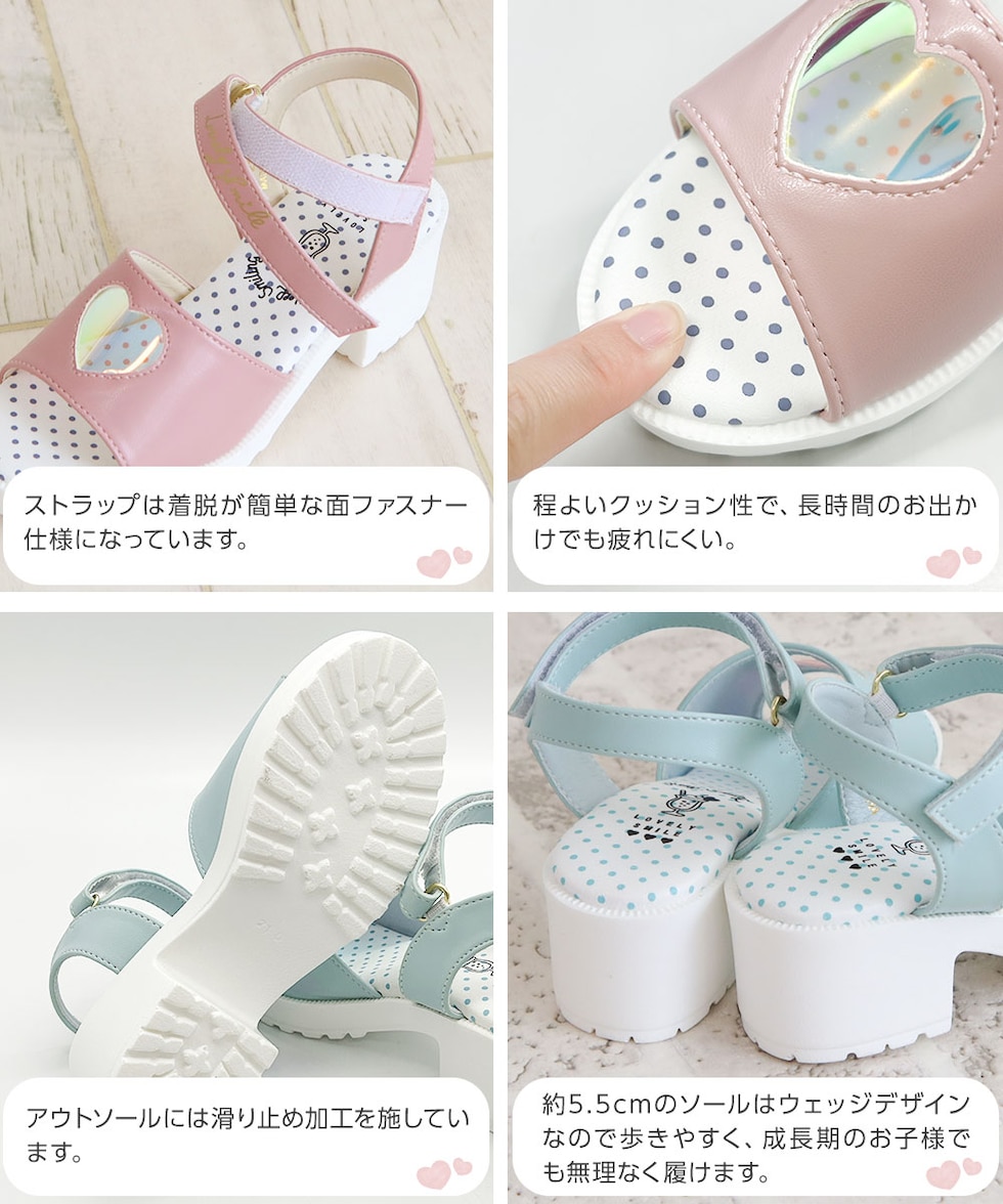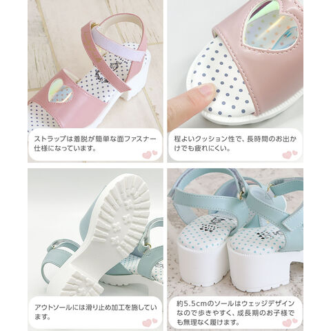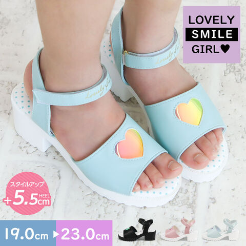 サンダル ジュニア 女の子 キッズ おしゃれ 可愛い 歩きやすい 軽量 厚底 ヒール 履きやすい 子供靴 黒 ブラック ミント ピンク LS3030
