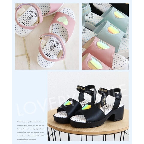 サンダル ジュニア 女の子 キッズ おしゃれ 可愛い 歩きやすい 軽量 厚底 ヒール 履きやすい 子供靴 黒 ブラック ミント ピンク LS3030のレビュー