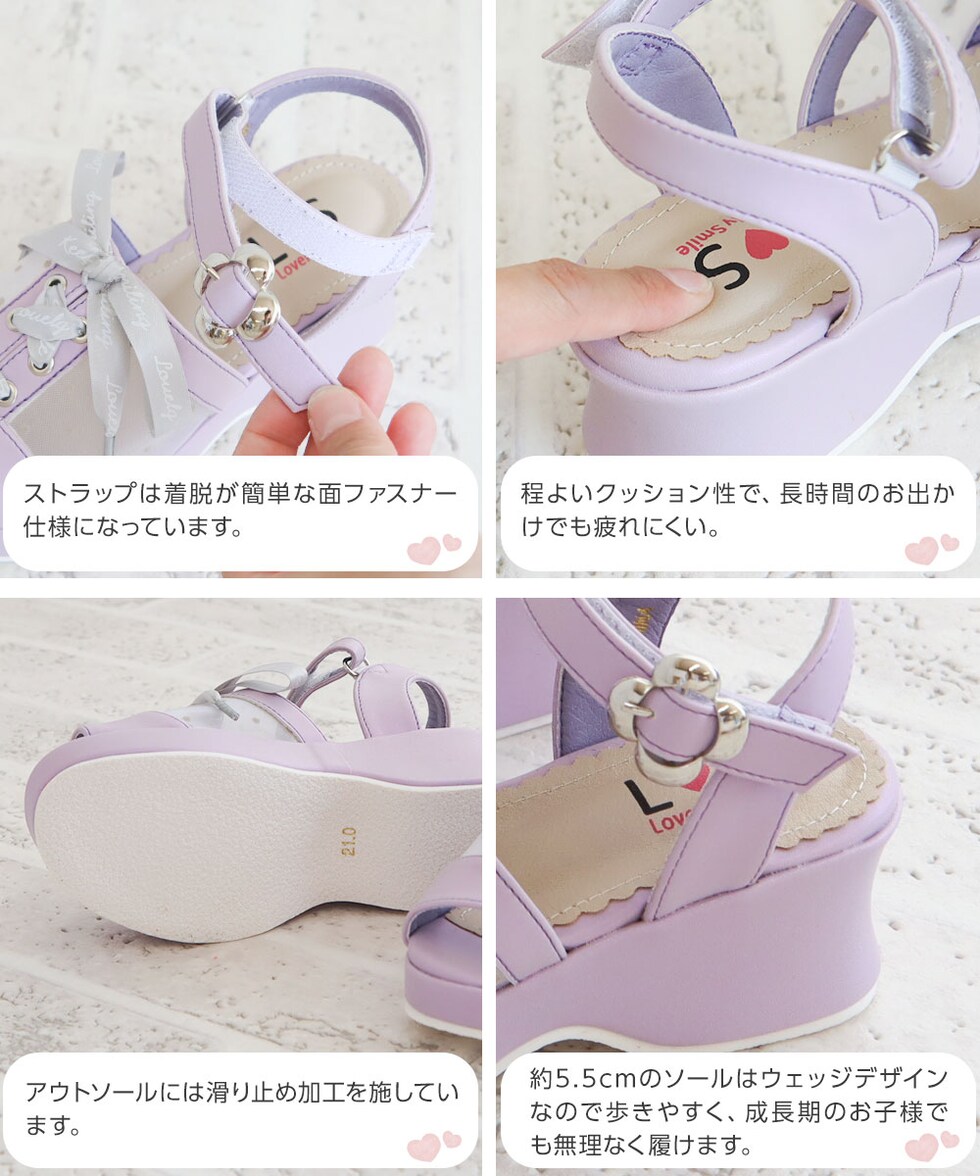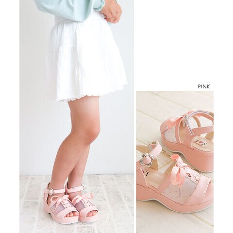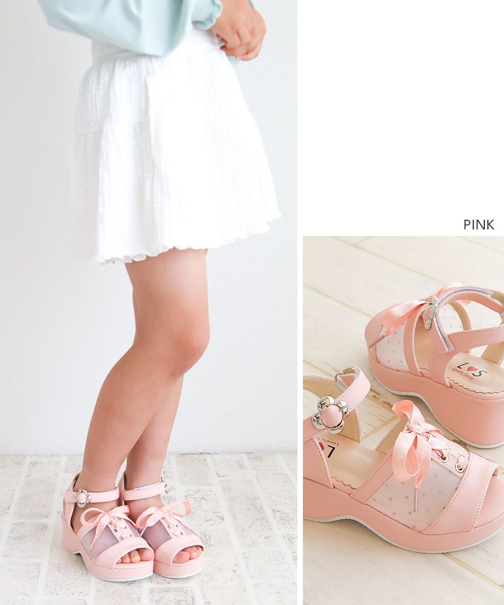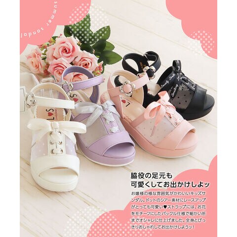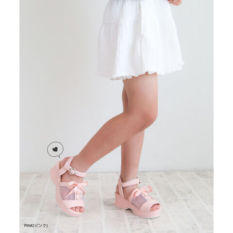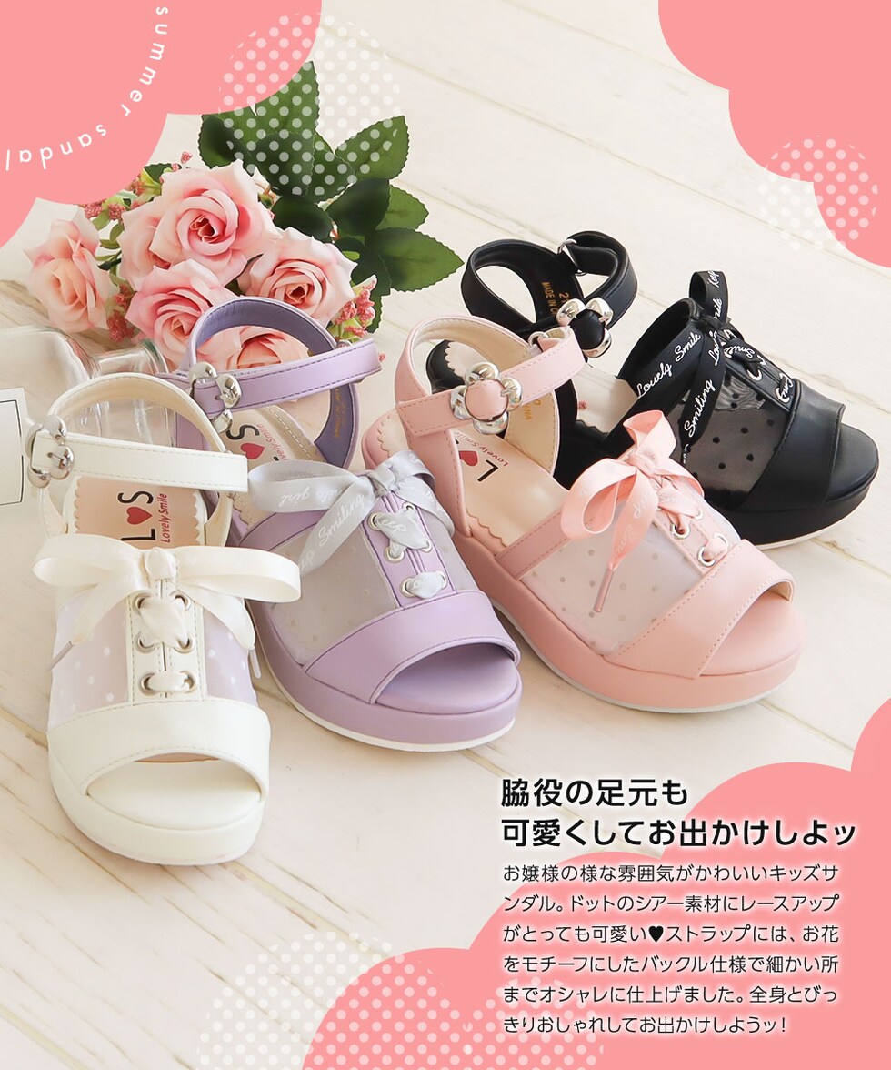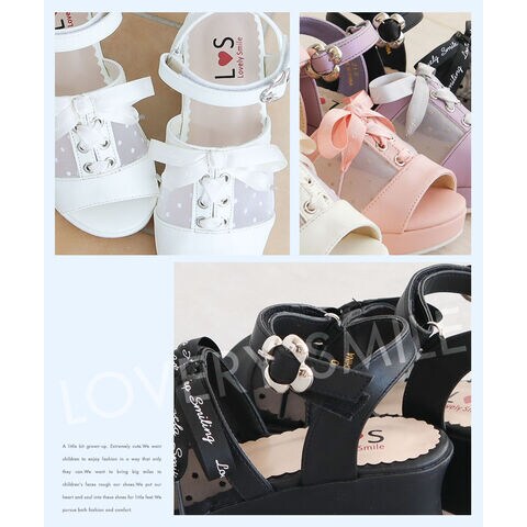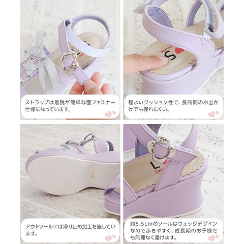 サンダル ジュニア 女の子 キッズ おしゃれ 可愛い 歩きやすい 軽量 厚底 ヒール 春 夏 子供靴 黒 パープル アイボリー ピンク LS4034