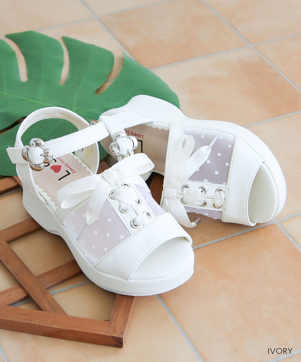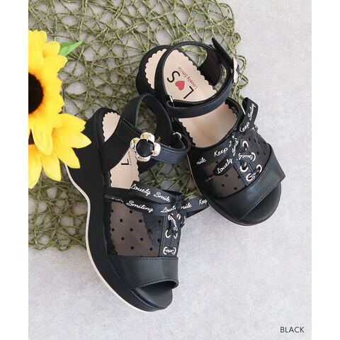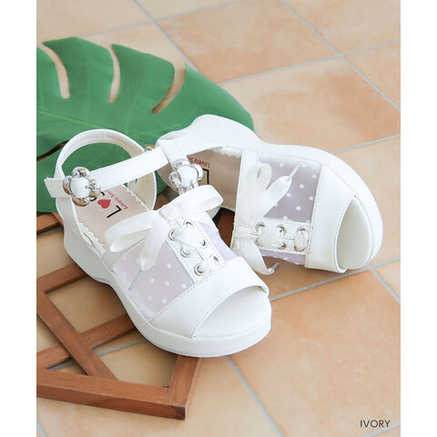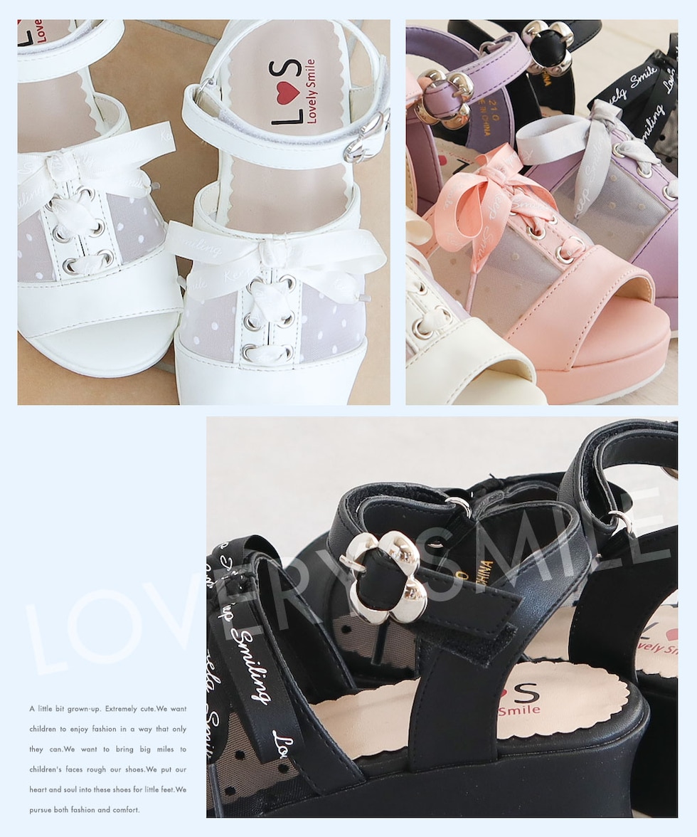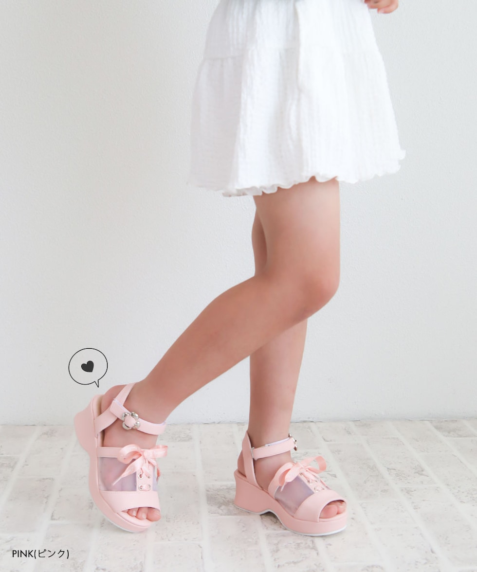 サンダル ジュニア 女の子 キッズ おしゃれ 可愛い 歩きやすい 軽量 厚底 ヒール 春 夏 子供靴 黒 パープル アイボリー ピンク LS4034
