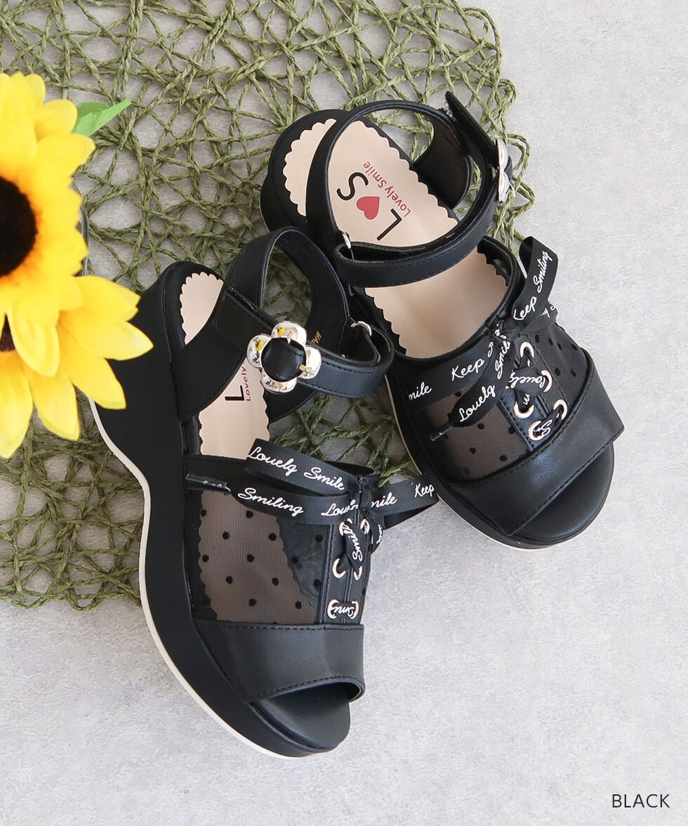 トレンドのシアー素材に、ロゴ入りのリボンとお花のバックルがアクセント!