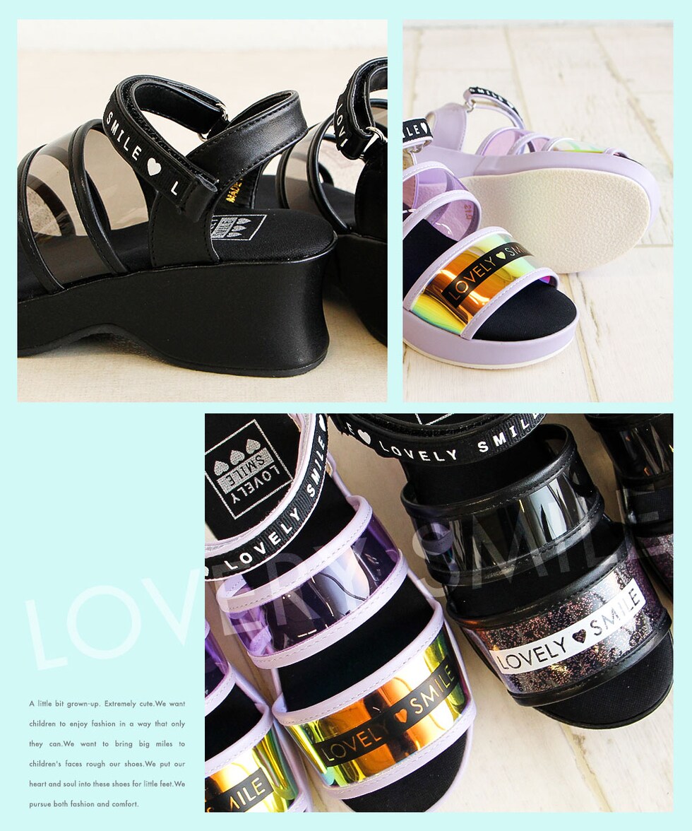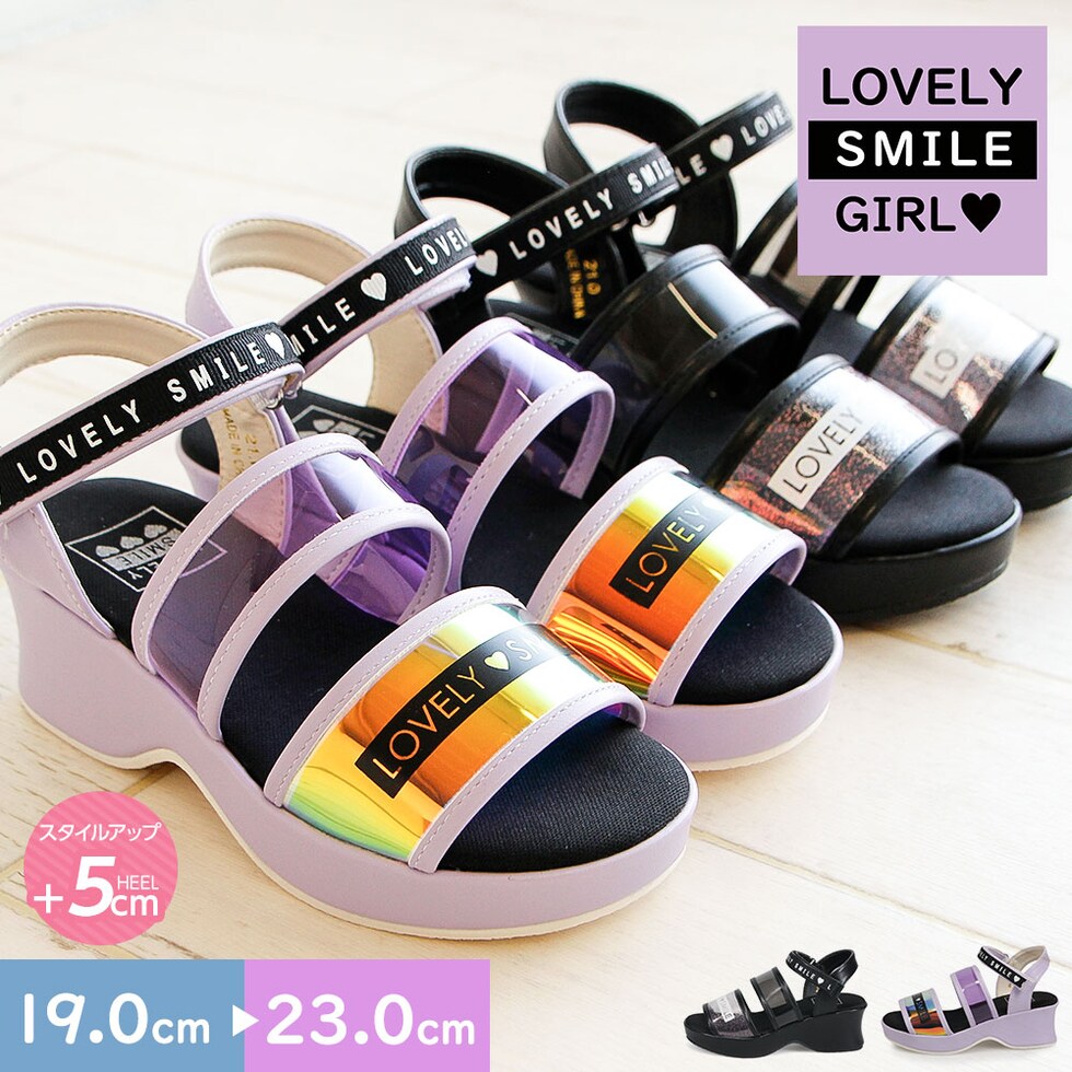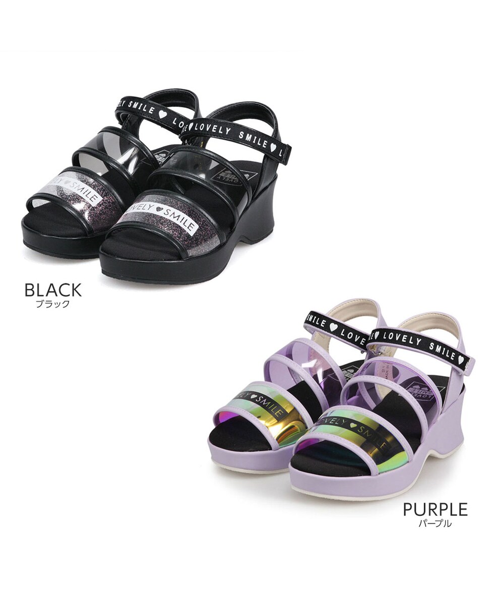サンダル ジュニア 女の子 キッズ おしゃれ 可愛い 歩きやすい クリア キラキラ 履きやすい 春 夏 子供靴 黒 ブラック パープル LS5035