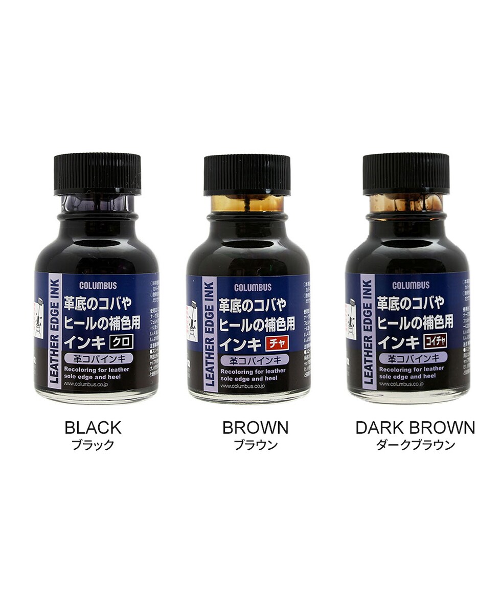 コロンブス 革コバインキ 革底シューズ 補色 補修 リペア 皮革用塗料 色あせ補正 水溶性 リキッドタイプ クロ コイチャ 日本製 COLUMBUS