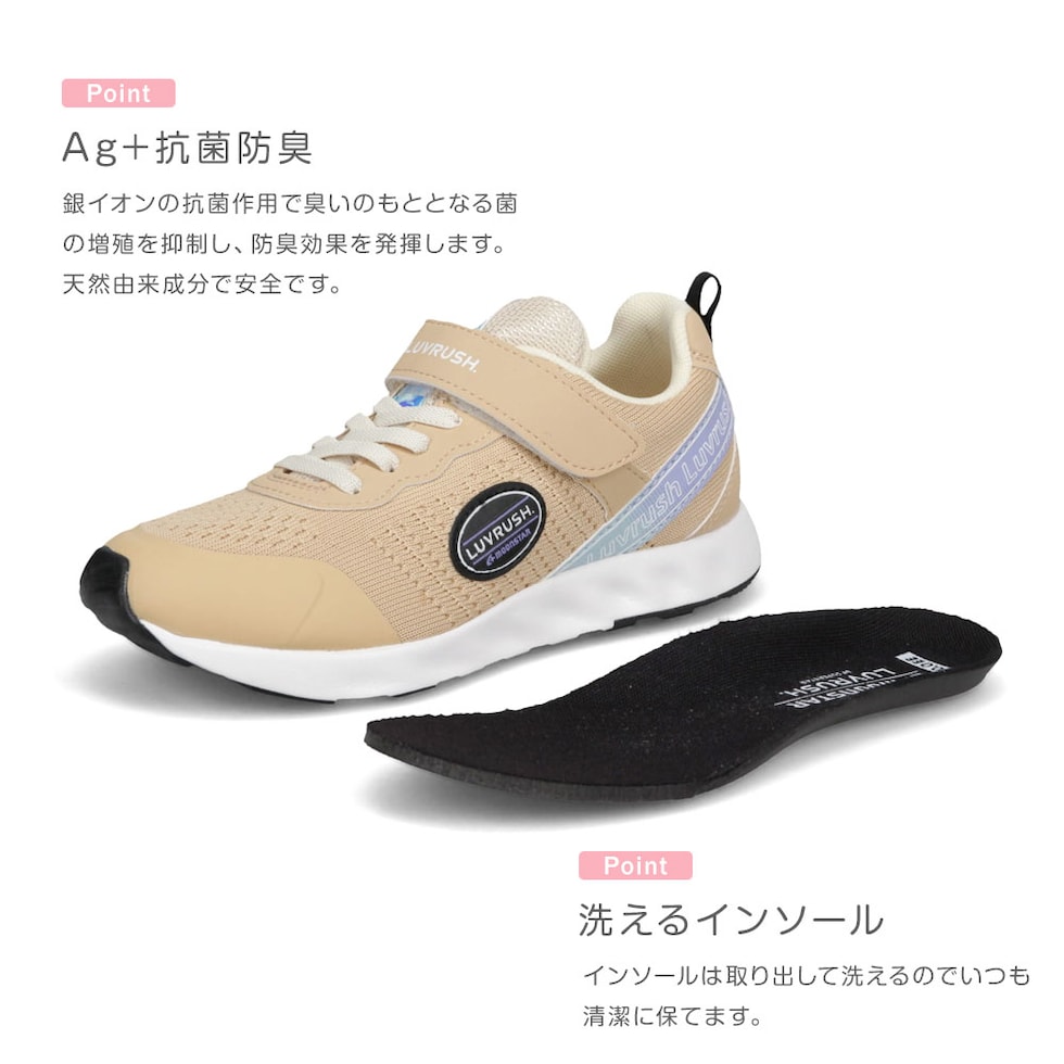スニーカー キッズ 女の子 スニーカー おしゃれ ムーンスター ラブラッシュ ジュニア 子供靴 スポーツ 紐靴 運動靴 軽量 マジックテープ 小学生 女子 通学 学校 抗菌 防臭 軽い スーパースター 運動会 体育 かわいい 黒 ブラック ベージュ ミント パープル 1126
