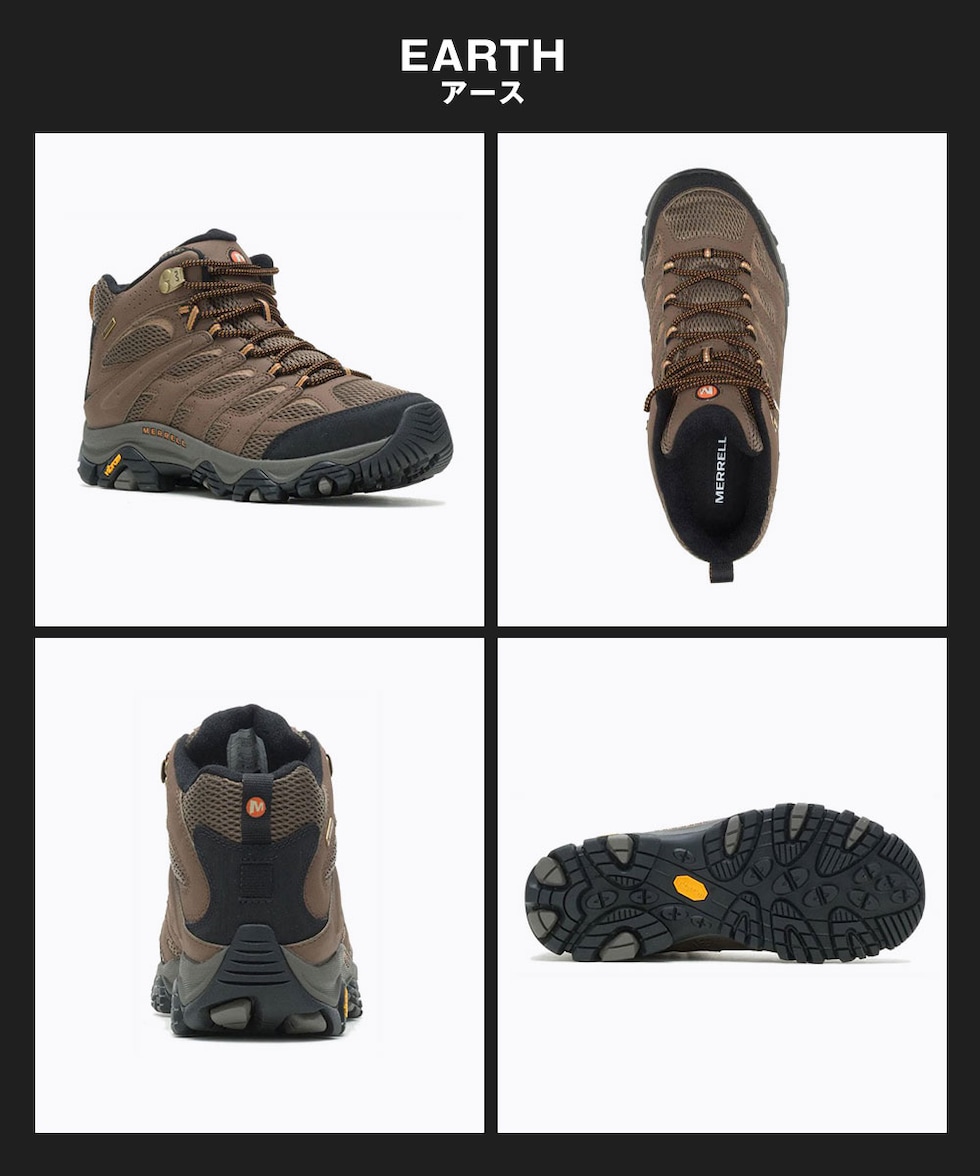 世界有数のイタリアのソールメーカー「ヴィブラム」を採用。アウトドアアクティビティに対応するメレル専用ソールで、優れたグリップ力と耐久性を発揮する。