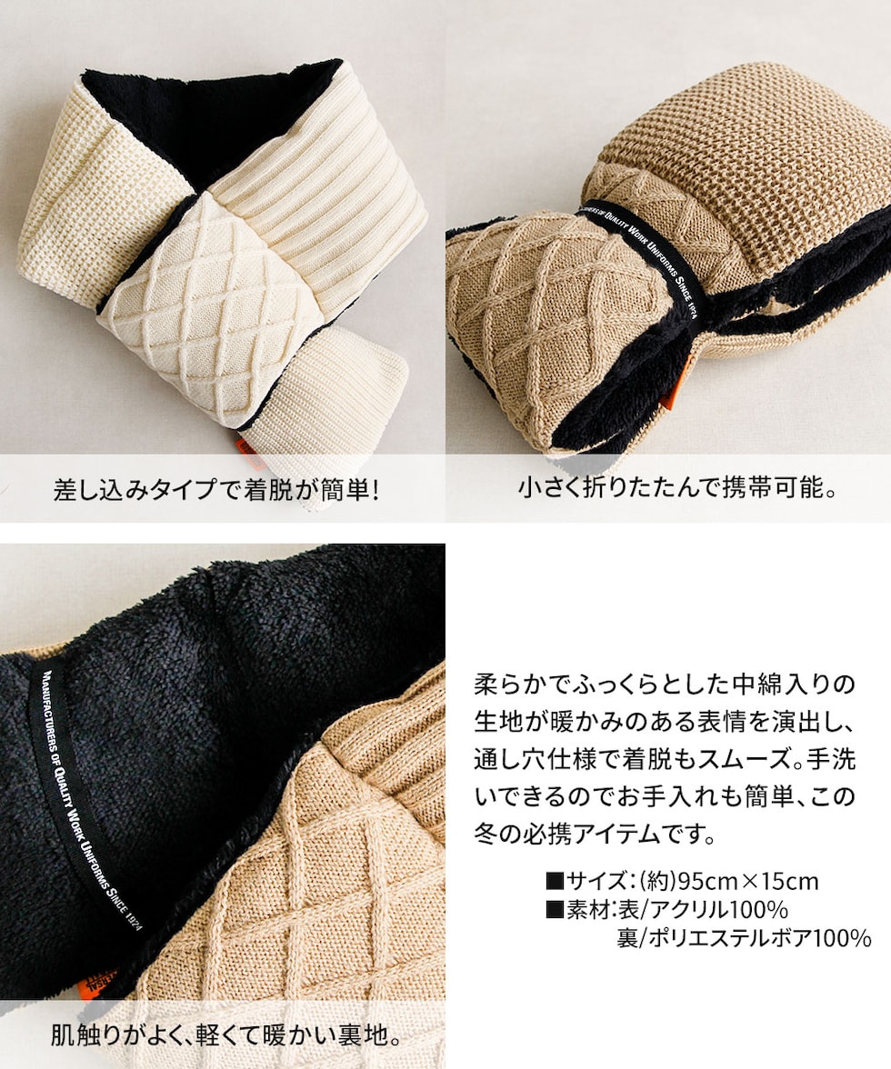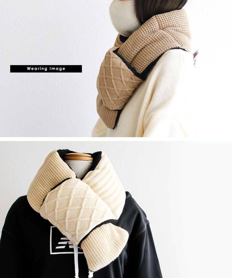 ■程良いボリュームのあるパッチワークニットの差し込みマフラー。