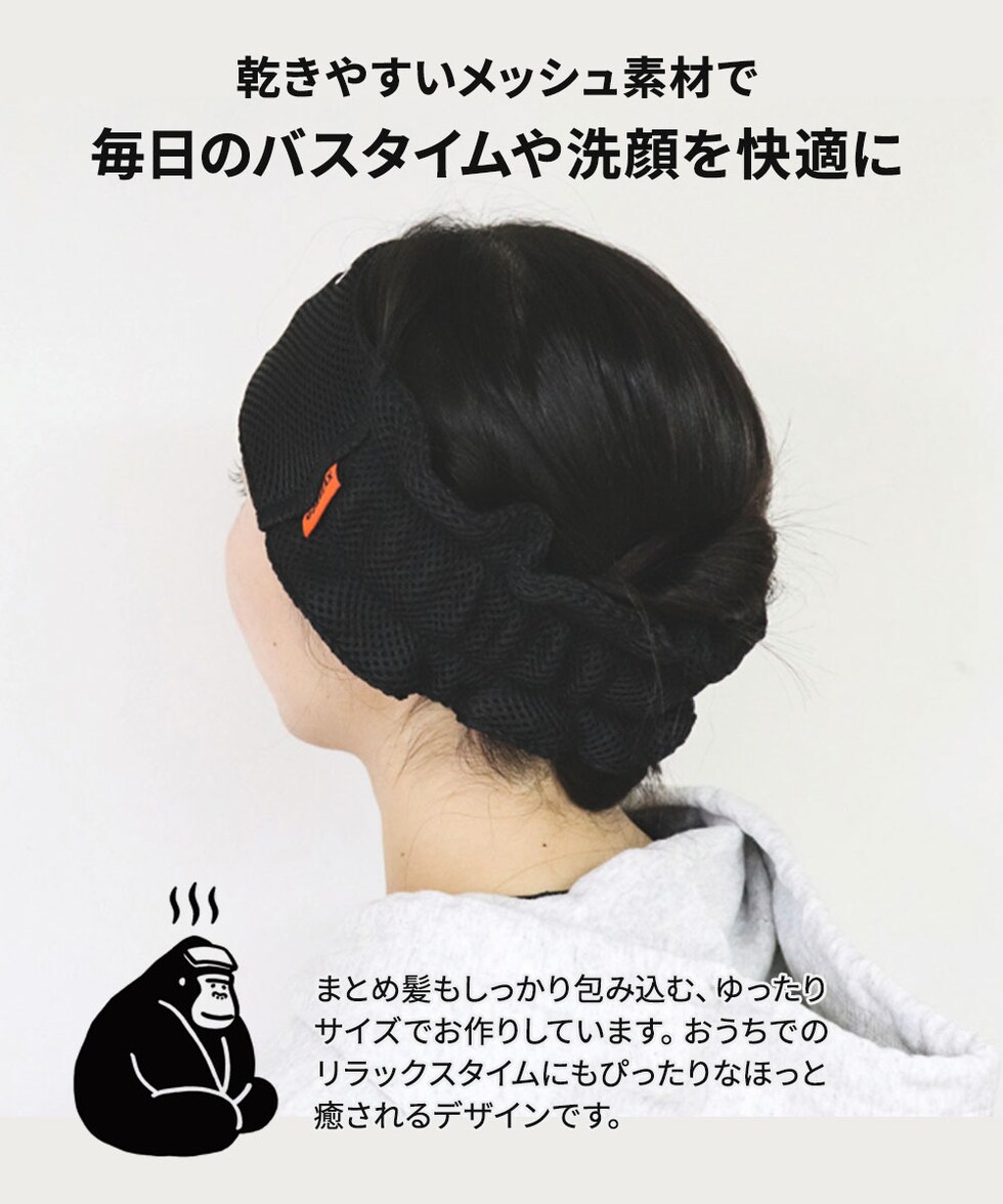 ごリラックス まもるさん メッシュヘアバンド ターバン 洗顔用 レディース キャラクター 吸水 お風呂 スキンケア メイク 前髪固定 25P46119