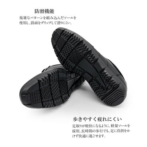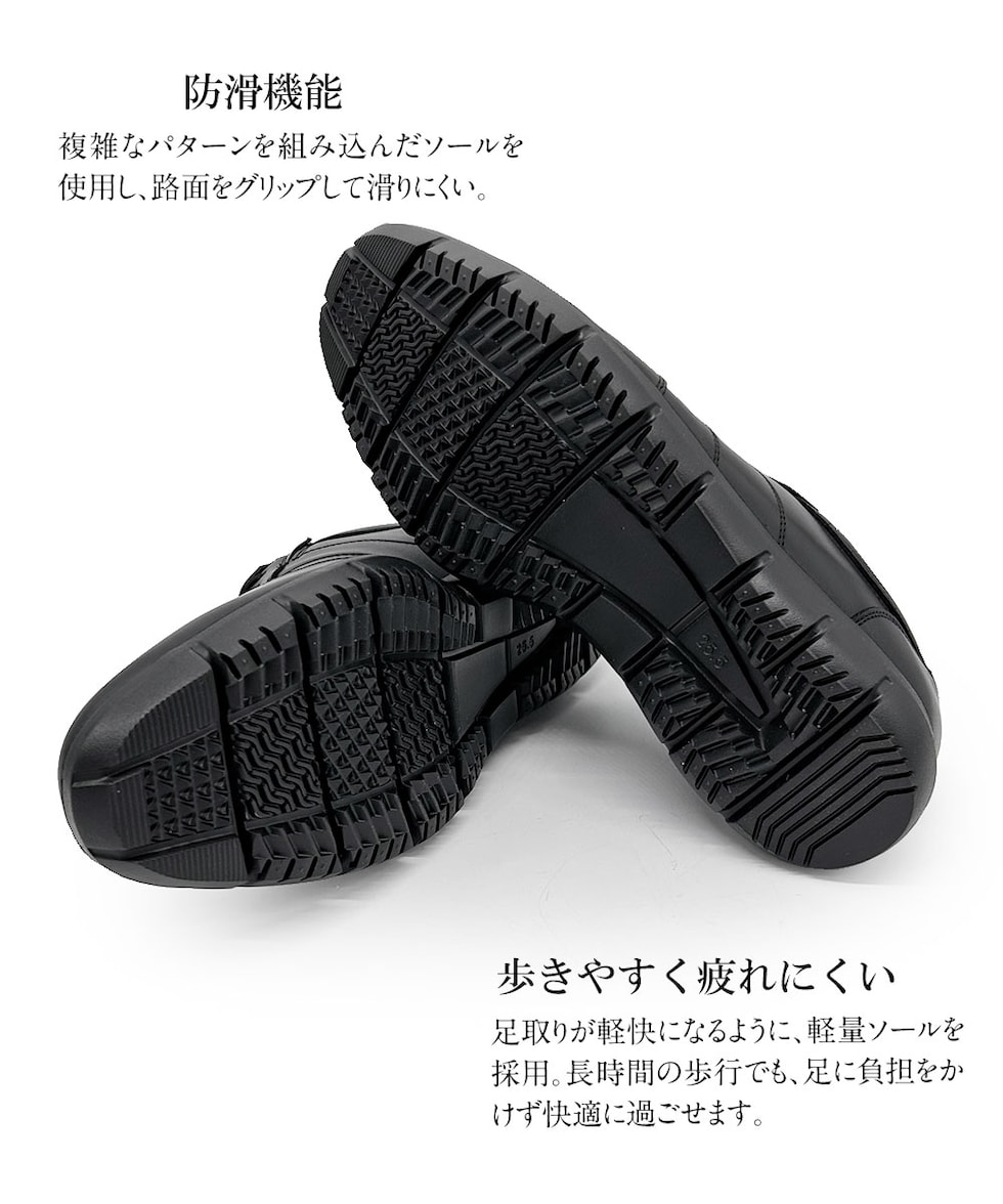 複雑なパターンを組み込んだソールを使用し、路面をグリップして滑りにくい。