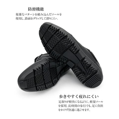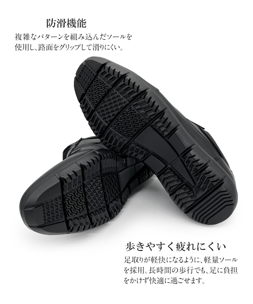 複雑なパターンを組み込んだソールを使用し、路面をグリップして滑りにくい。