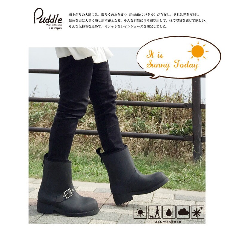 Puddle ブラッシュド加工 エンジニア レインブーツ レディース ショート スノーブーツ 雪 靴 滑らない 長靴 滑り止め 防滑 スノーシューズ 雪道 ショートブーツ ローヒール 黒 防水 エンジニアブーツ レディース レインシューズ おしゃれ 人気 eu-6014 送料無料