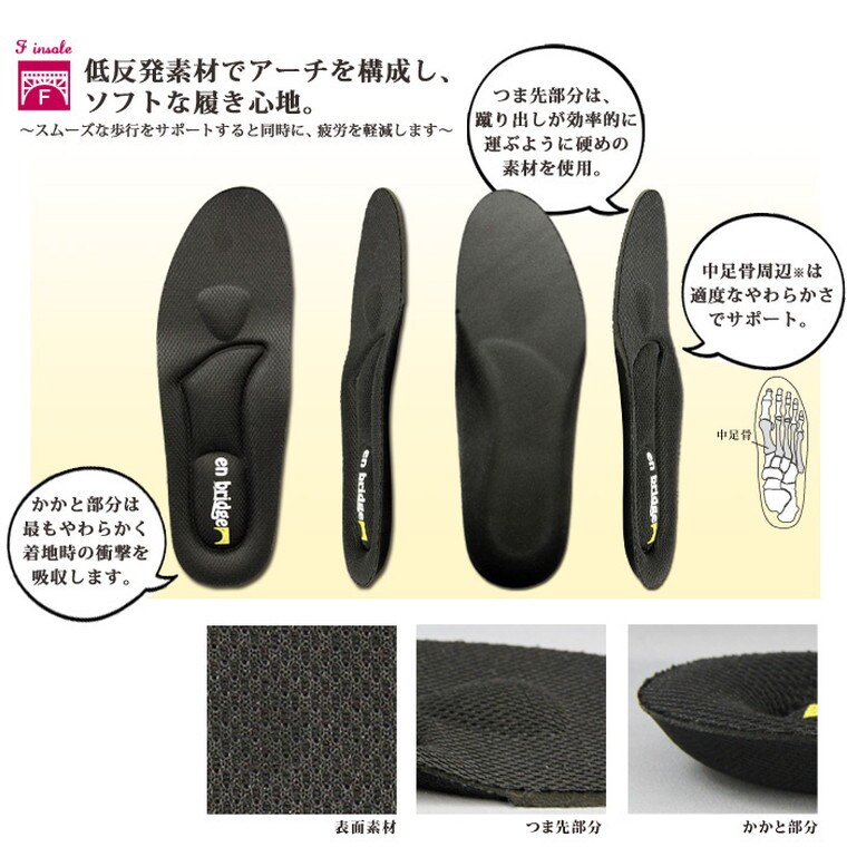 ・足の大切な"3つのアーチ"をサポートしつつ、やわらかいな履き心地を実現した新開発の「en brigde(エンブリッジ)」インソールを搭載!