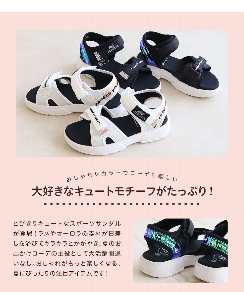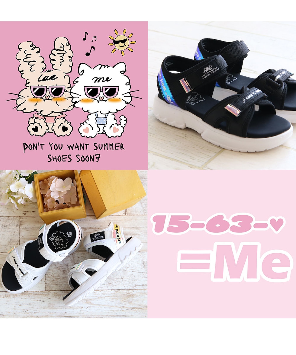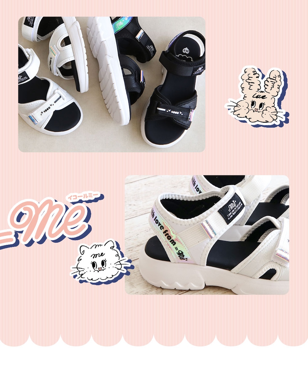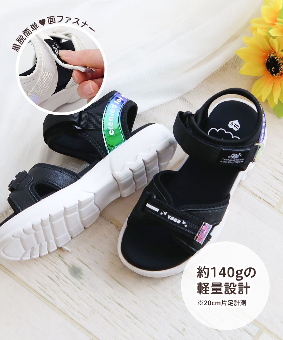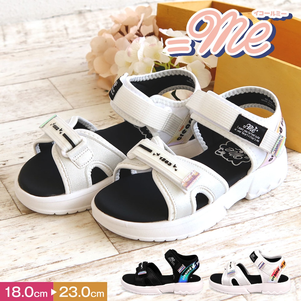 イコールミー スポーツサンダル キッズ ジュニア 女の子 軽量 軽い おしゃれ キラキラ 可愛い 子供靴 黒 白 ブラック ホワイト =me 3757