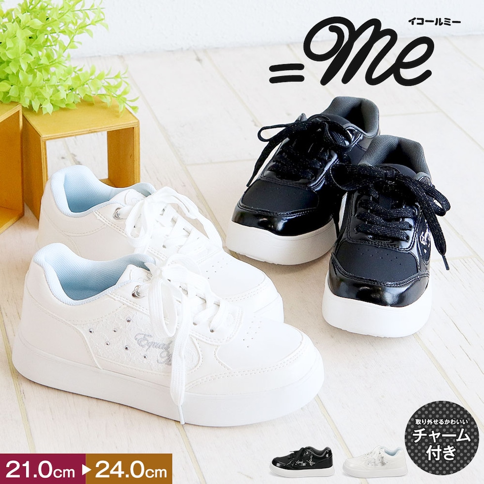 イコールミー スニーカー キッズ 女の子 ローカット 軽い おしゃれ かわいい ジュニア カジュアル 子供靴 シューズ 白 黒 =me 3799