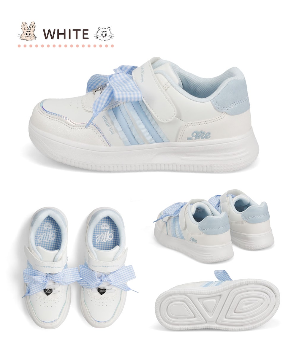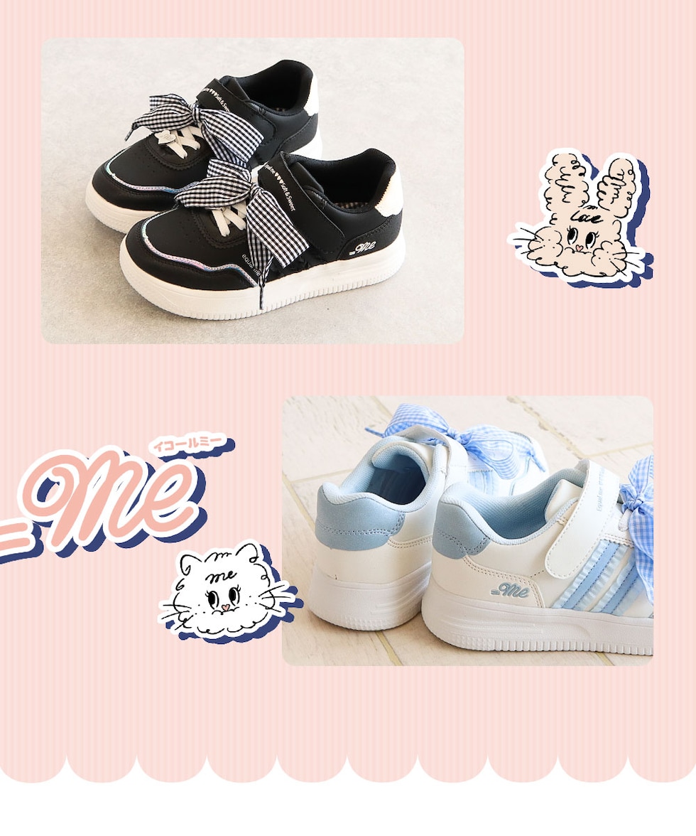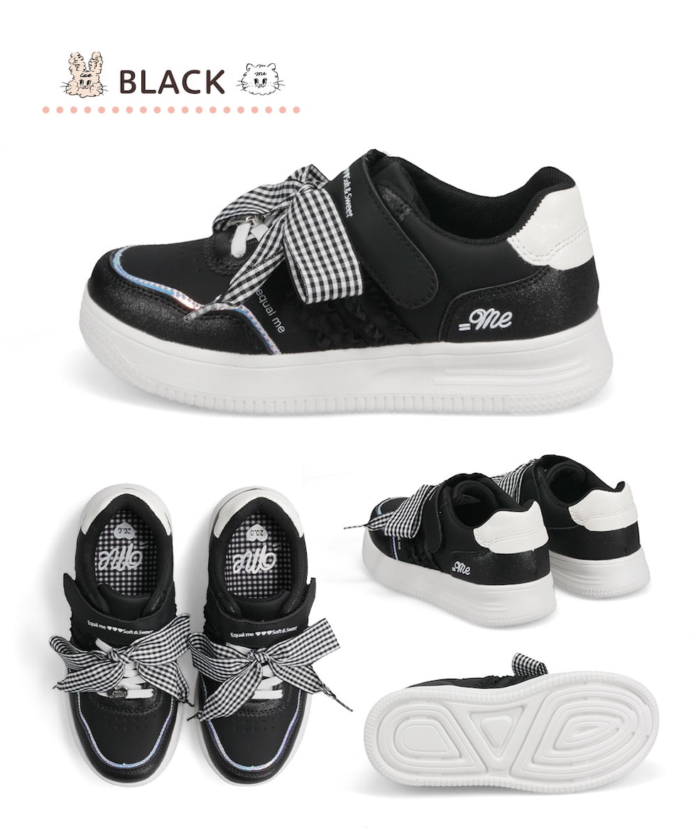 イコールミー スニーカー キッズ 女の子 ローカット 軽い リボン おしゃれ かわいい ジュニア 子供靴 シューズ 白 黒 =me 3914