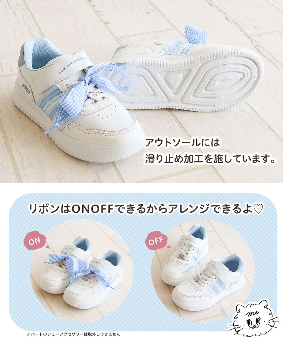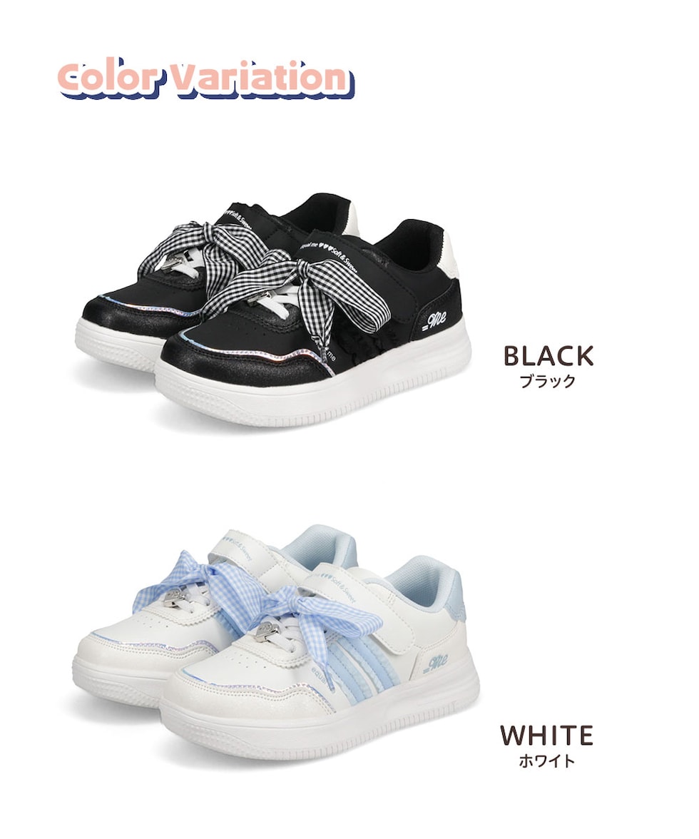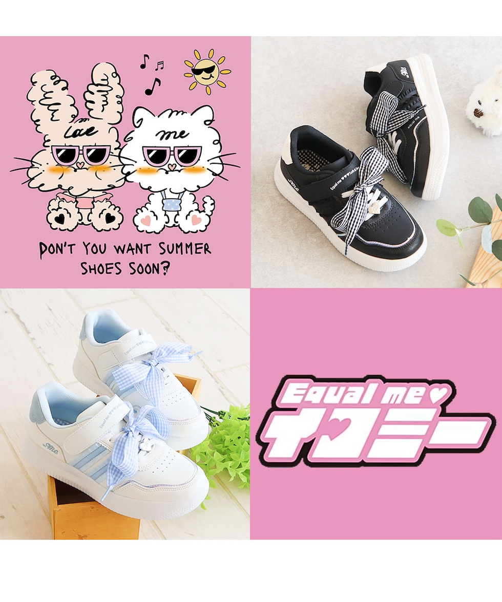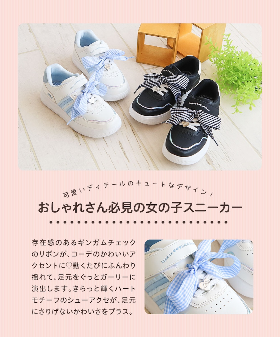イコールミー スニーカー キッズ 女の子 ローカット 軽い リボン おしゃれ かわいい ジュニア 子供靴 シューズ 白 黒 =me 3914