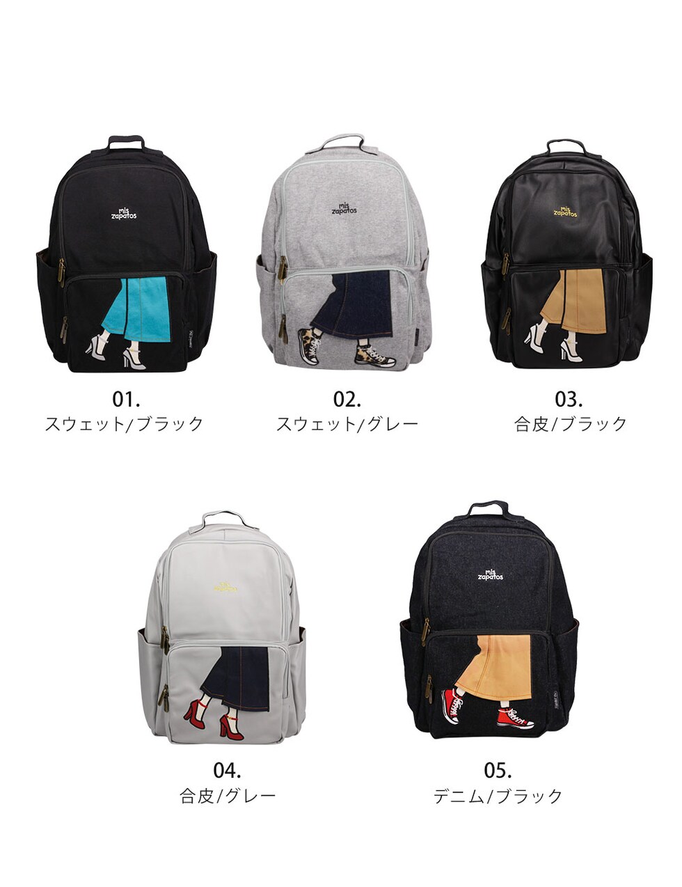 [素材]:スウェット、デニム、合成皮革、ナイロン、キャンバス