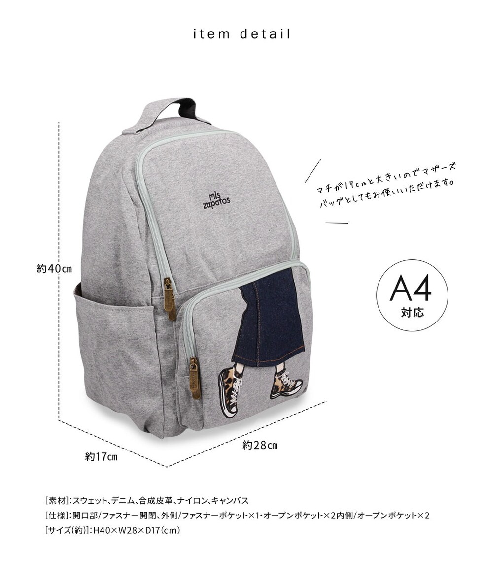 マチが17cmと大きいのでマザーズバッグとしてもお使いいただけます。