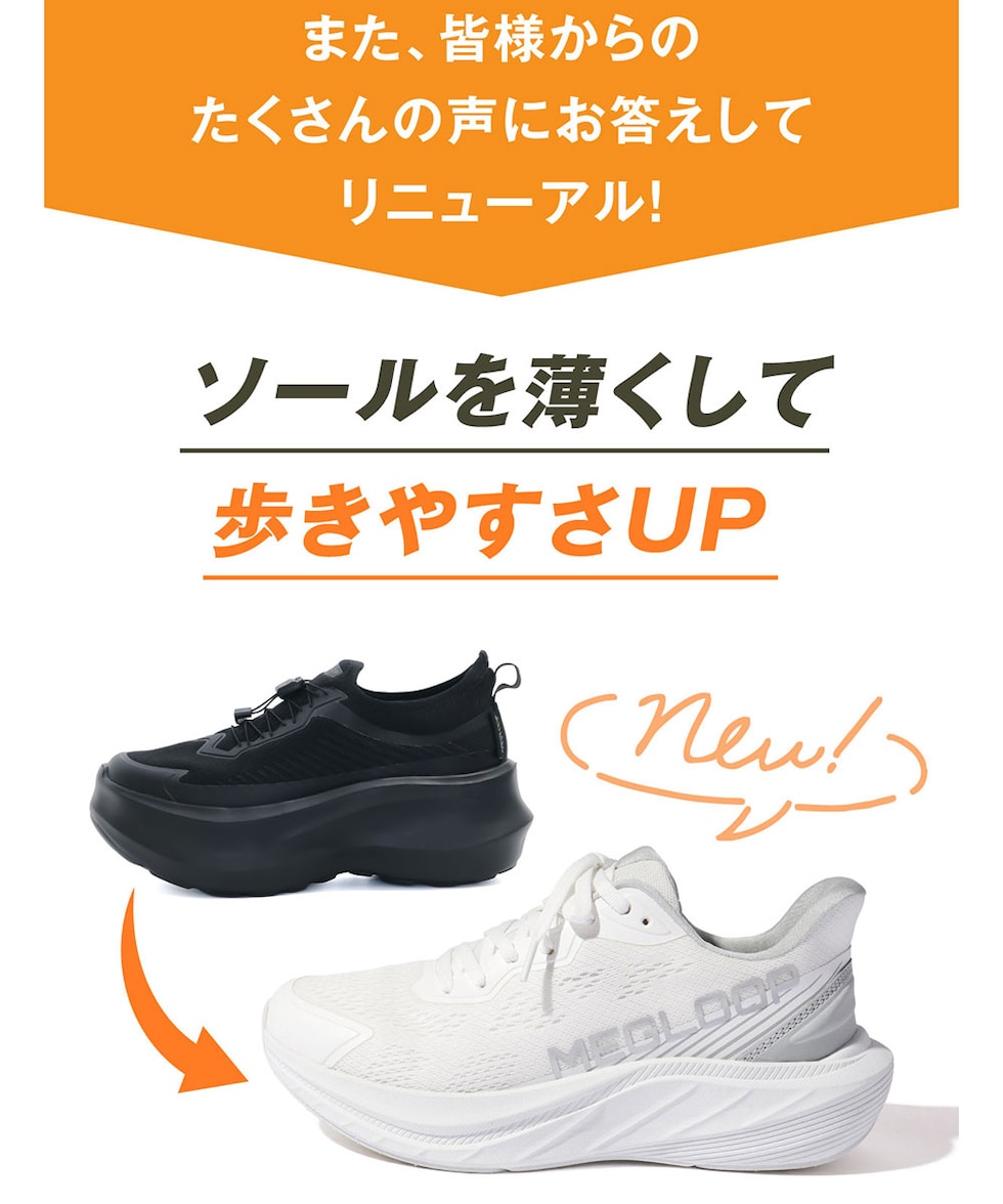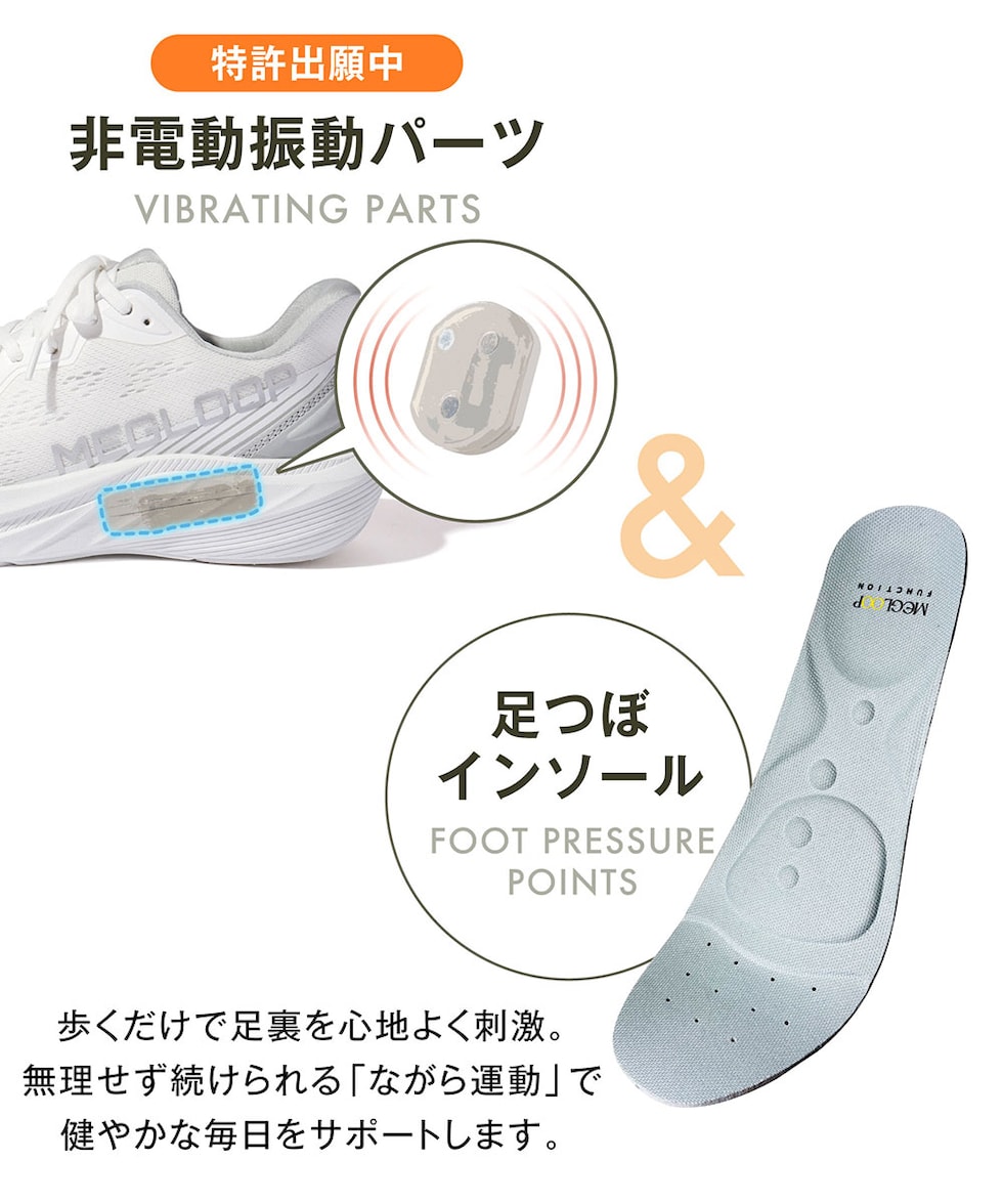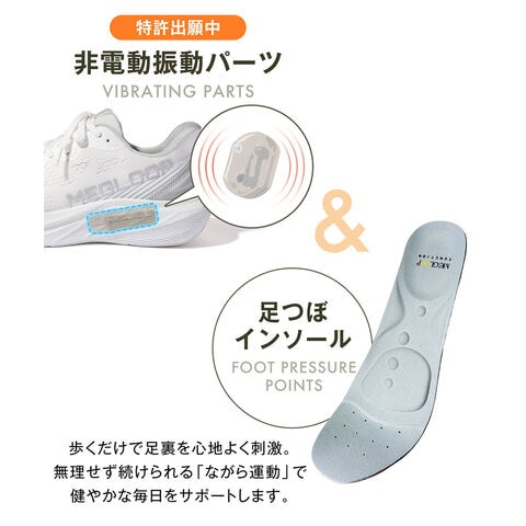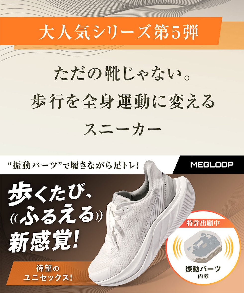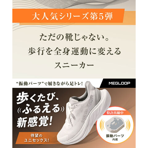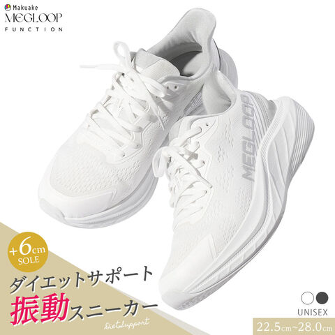 振動 シューズ ダイエット スニーカー レディース メンズ 厚底 靴 立ったまま履ける ハンズフリー 黒 ブラック 白 MEGLOOP 1005