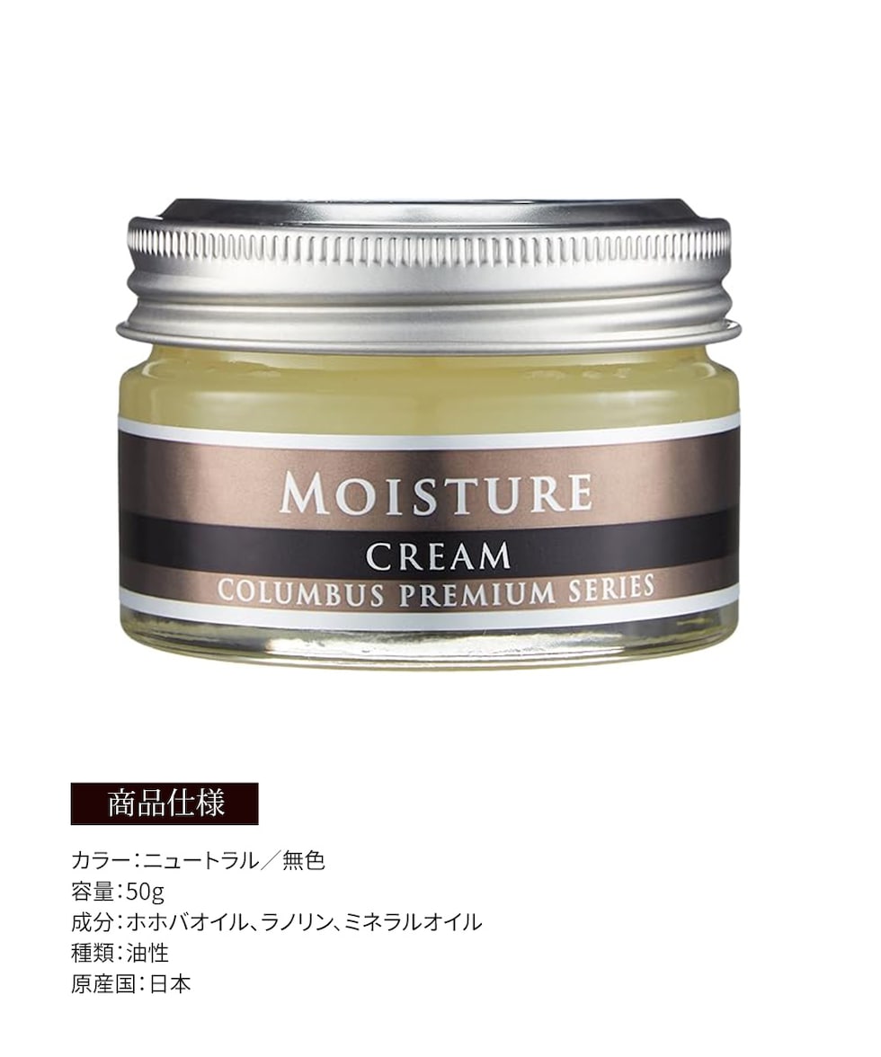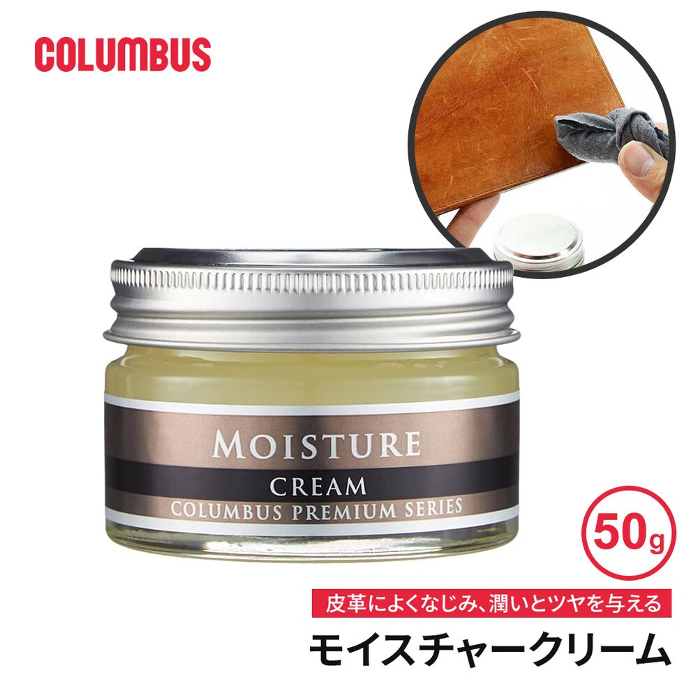 コロンブス モイスチャークリーム 保革 ホホバオイル ラノリン ミネラルオイル 保湿 スムース革専用 ツヤ 日本製 塗布クロス付き COLUMBUS