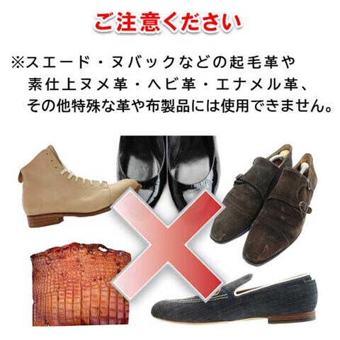 ・エナメル革、爬虫類革、スエードやヌバックなどの起毛革、布製品には使えません。