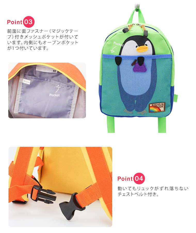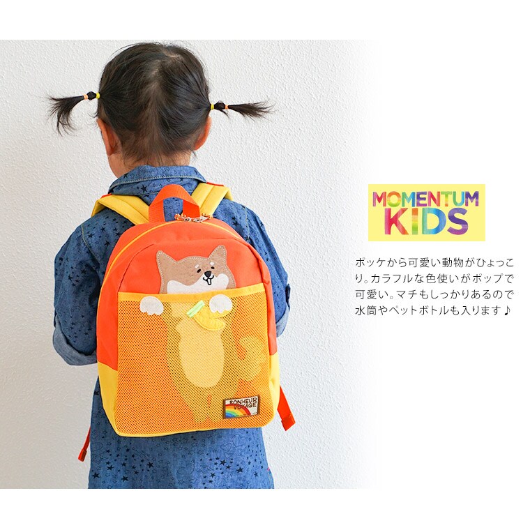 MOMENTUM KIDS リュックサック キッズ 女の子 男の子 アニマル 動物 かわいい カラフル 男女兼用 子供用 バッグ キッズリュック 幼稚園 保育園 遠足 通園 お祝い 入園 入学 プレゼント ギフト ハーネスベルト付き 猫 犬 ペンギン 緑 青 水色 黄色 ピンク 732
