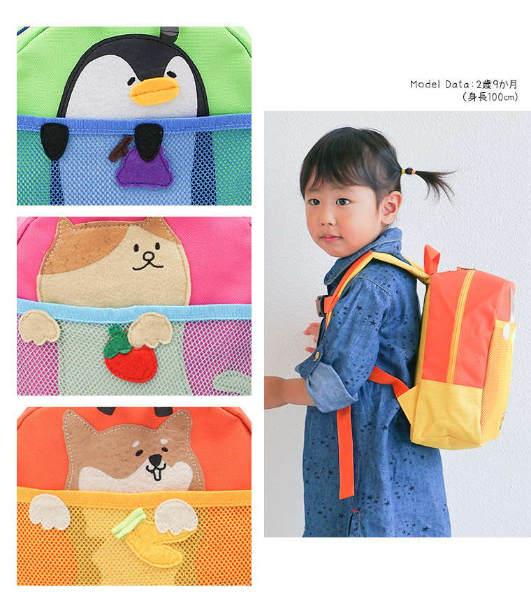 通園バッグやお出掛けリュックなど、ユニークでかわいいキッズバッグです。