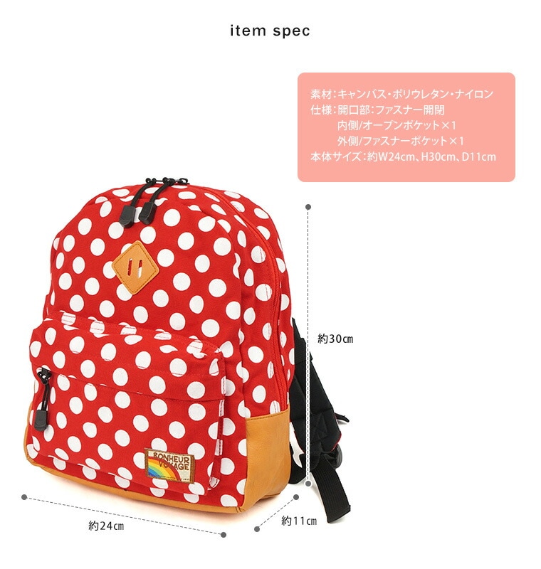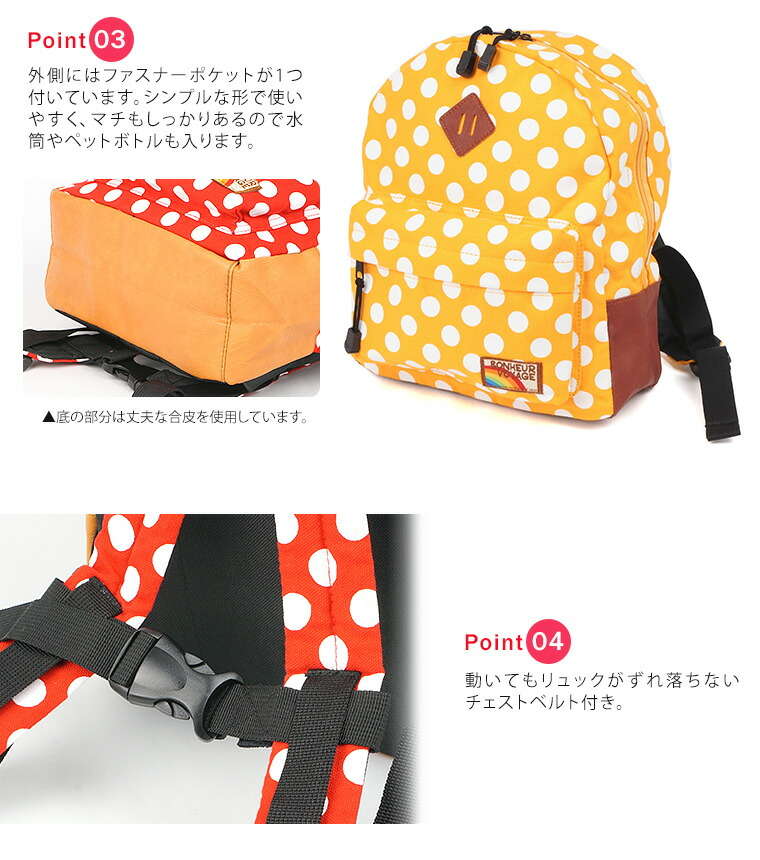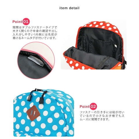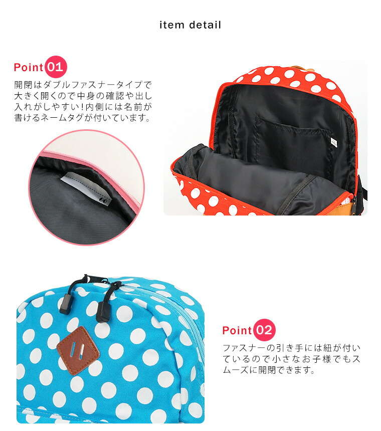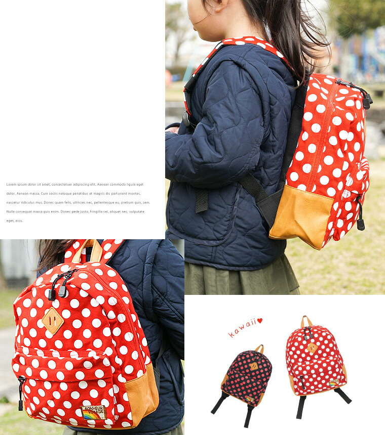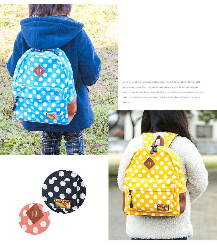 男の子でも女の子でも使えるポップで可愛いドット柄リュックです。