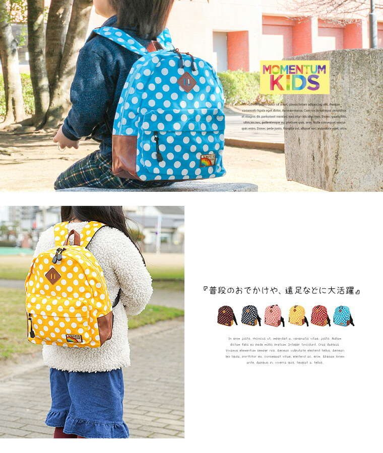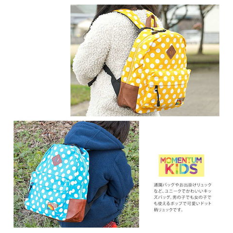 MOMENTUM KIDS リュックサック キッズ 女の子 リュック 女の子 おしゃれ リュックサック キッズ 男の子 大容量 幼稚園 保育園 遠足 通園 子供用 バッグ かわいい デイパック ドット柄 水玉 チェストベルト付き ハーネス ネイビー ピンク 黄色 黒 赤 青 k499