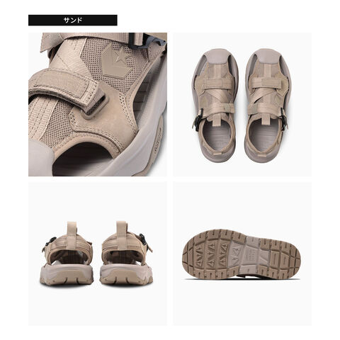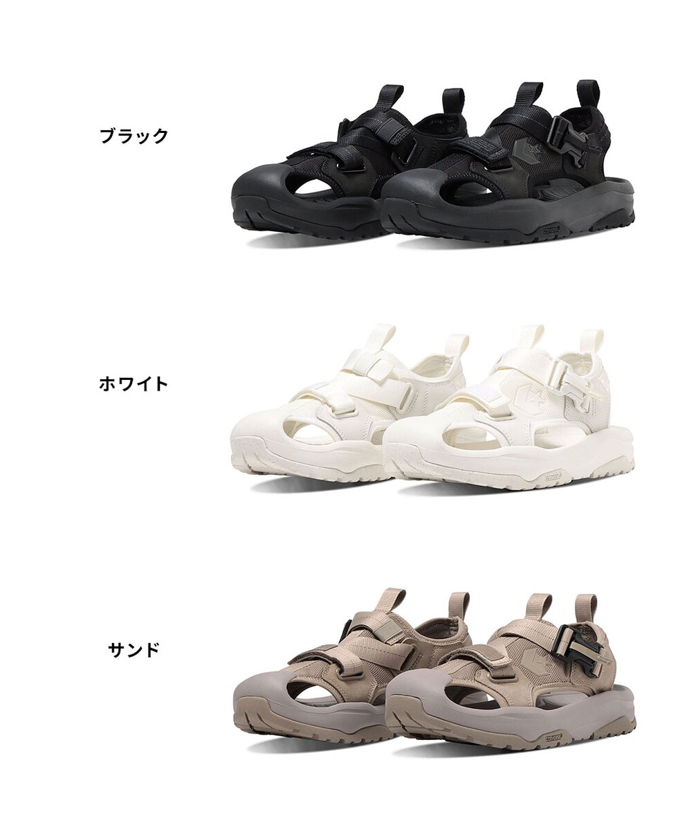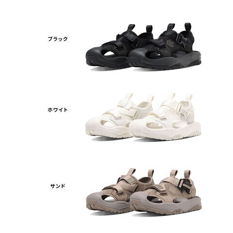 カラーは、サンド、ブラック、ホワイトの3カラー展開。どのカラーも、アウトドアシーンをスタイリッシュに演出してくれる一足です。