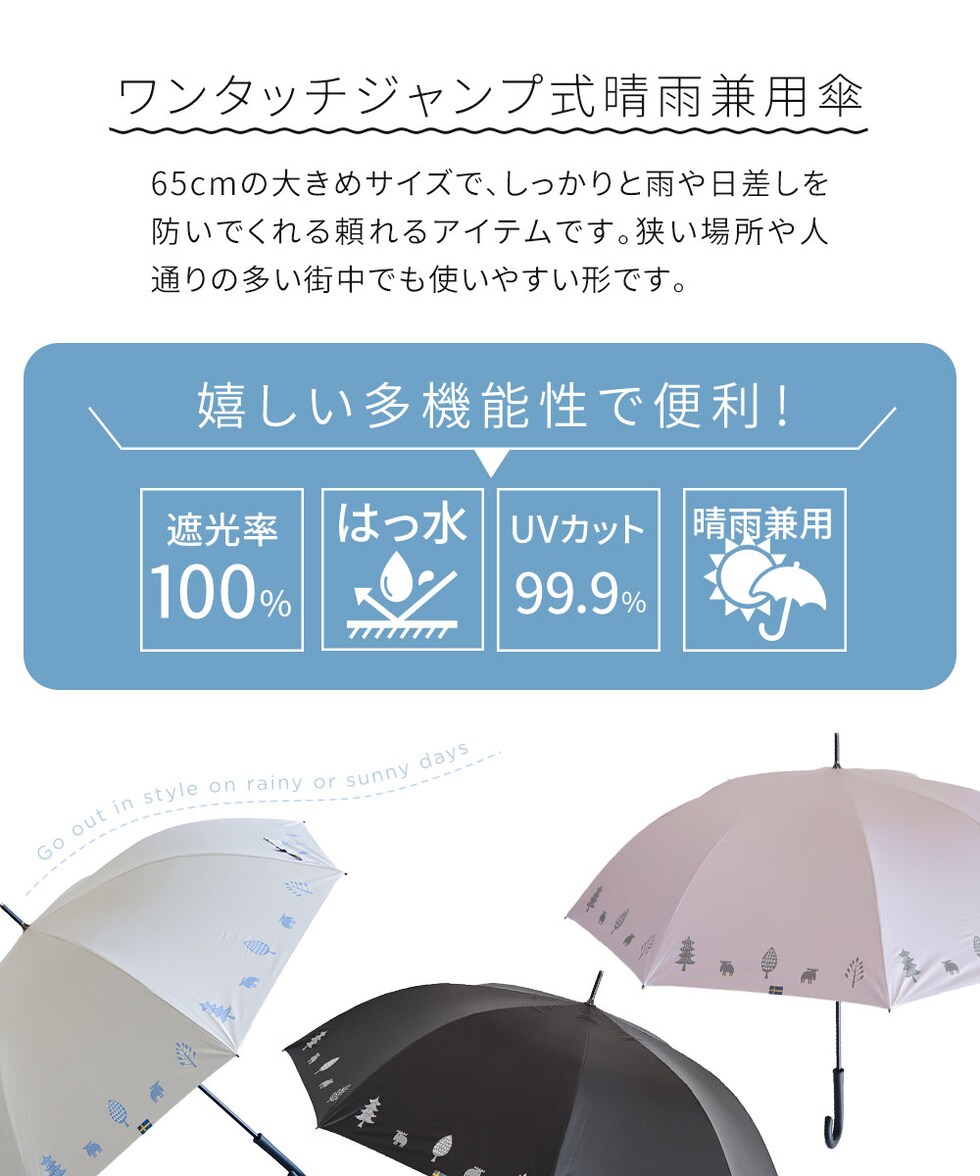moz 傘 65cm レディース 大きめ ドーム型 晴雨兼用 1級遮光 UVカット 紫外線対策 長傘 レイングッズ 雨具 撥水 ワンタッチ ジャンプ式 アンブレラ モズ 554735