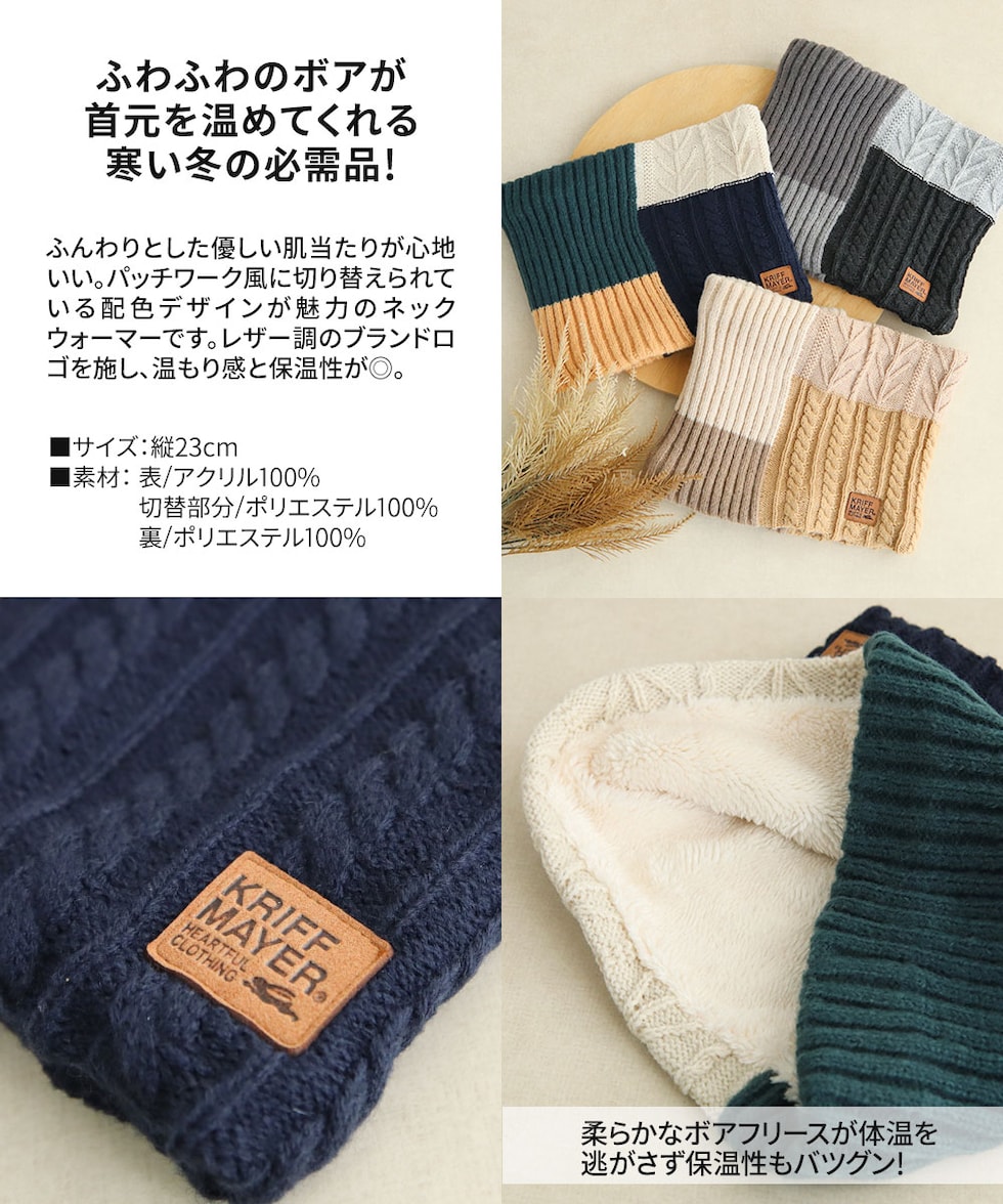 クリフメイヤー ネック ウォーマー メンズ レディース もこもこ 裏起毛 フリース 男性 女性 秋 冬 防寒 ウェア スヌード パネル ニットn1286 KRIFF MAYER