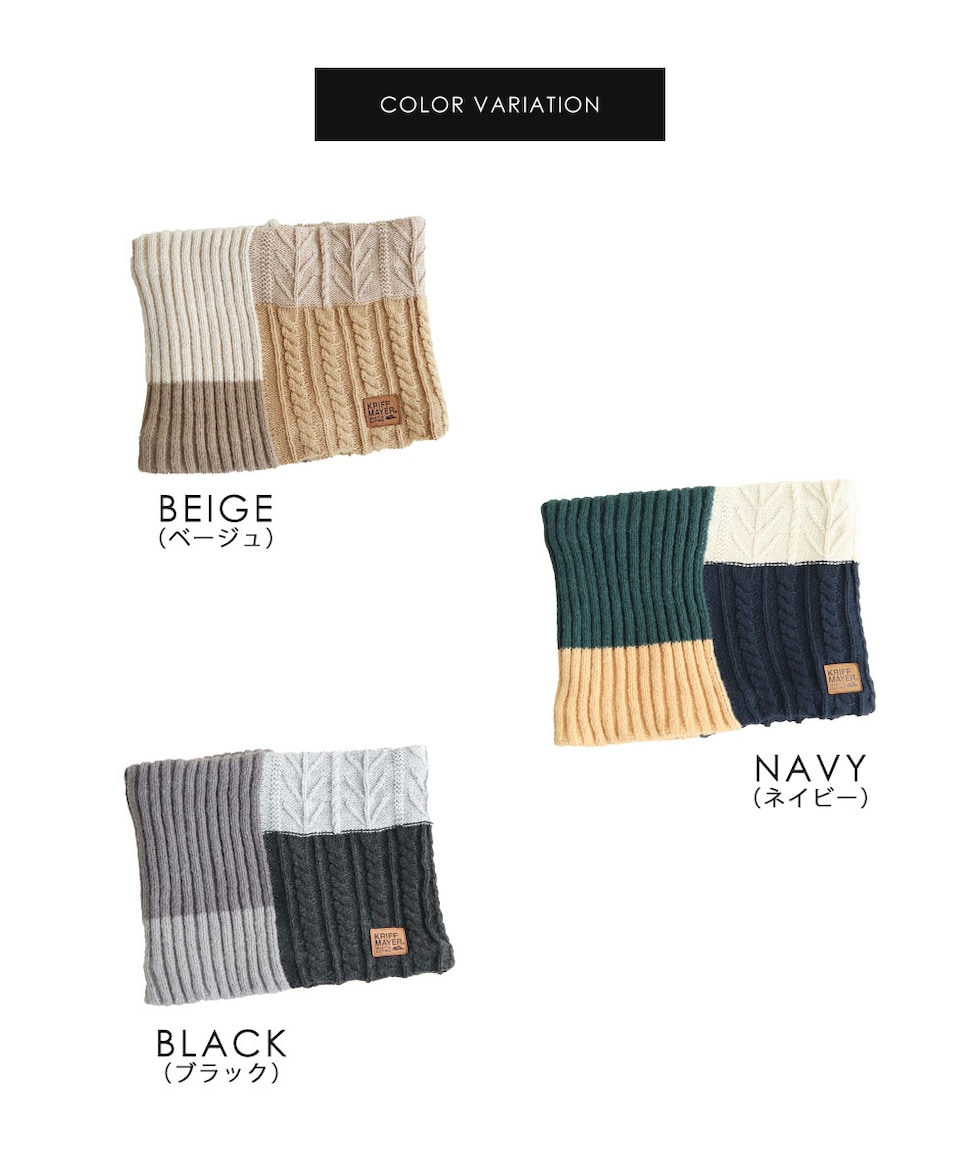 パッチワーク風に切り替えられている配色デザインが魅力のネックウォーマーです。