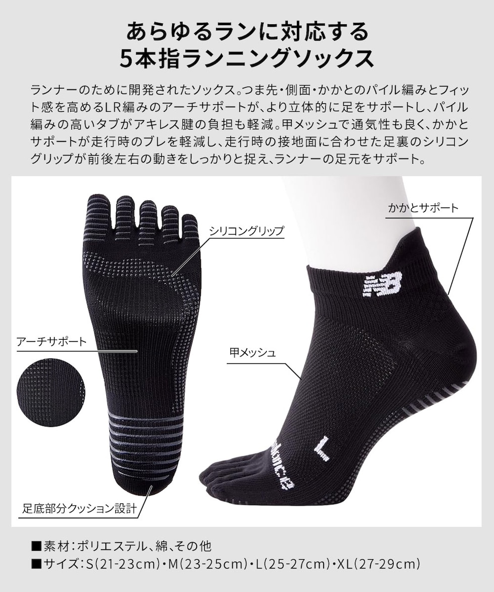 ニューバランス ファイブフィンガーズ ランニングソックス 五本指 靴下 吸汗速乾 スポーツ ブラック L XL New Balance AC5600K