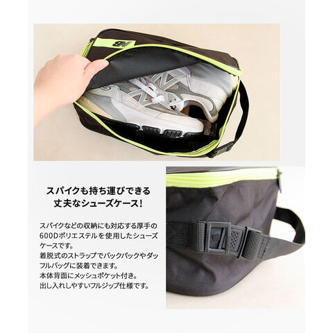 スパイクなどの収納にも対応する厚手の600Dポリエステルを使用したラージサイズのシューズケースです。
