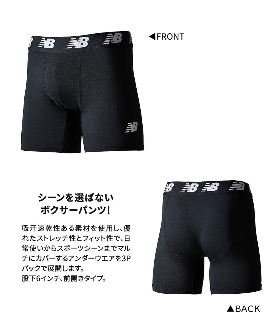 ニューバランス ボクサー パンツ メンズ 三枚組 吸汗性 速乾性 下着 ジュニア おしゃれ 黒 ブラック new balance LAU13001