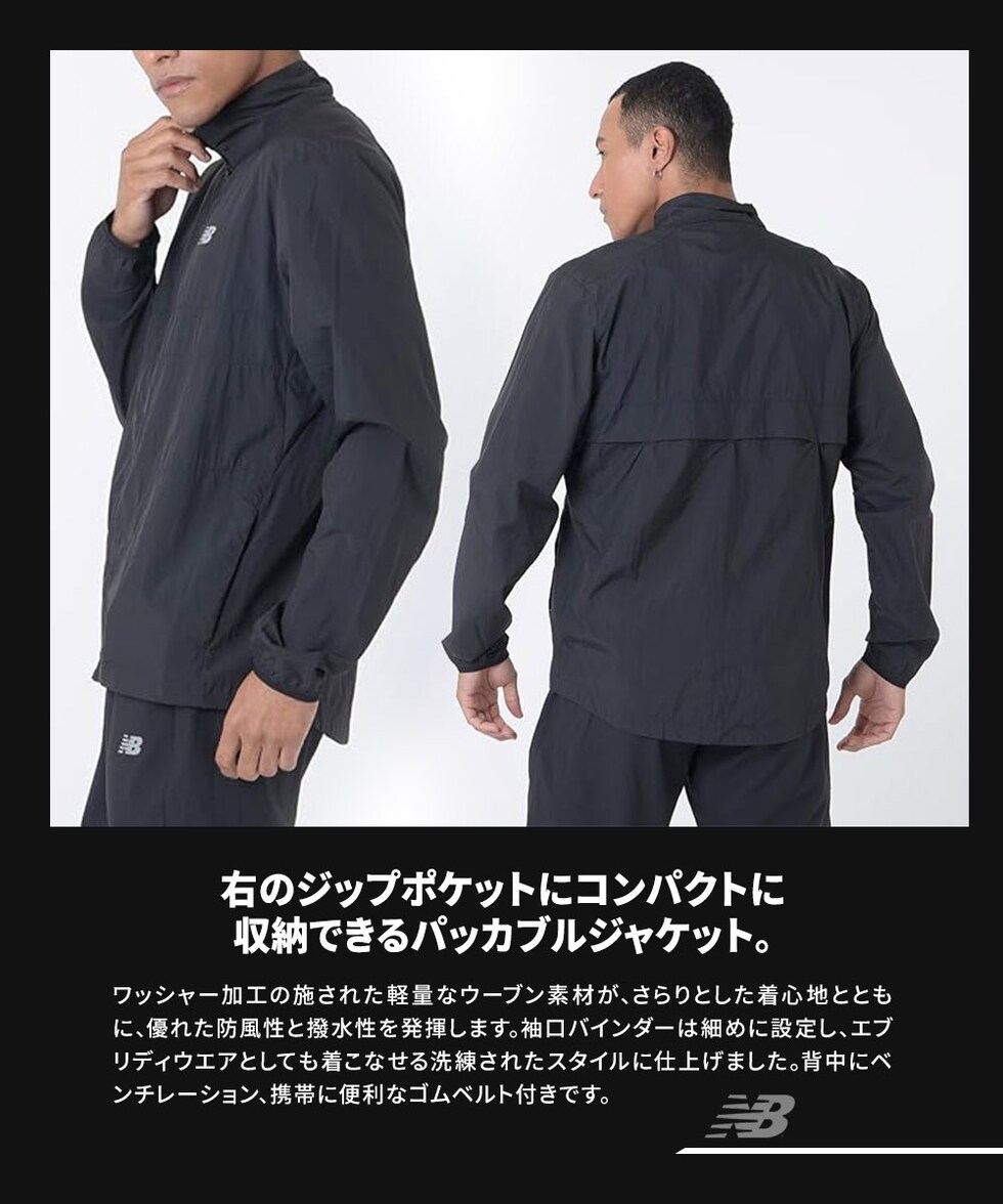 ニューバランス ランパッカブル ジャケット メンズ ウインドブレーカー 軽量 撥水 防風 ウォーキング スポーツ 収納 ブラック MJ41276