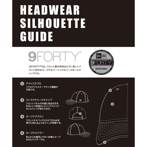 フロント裏の特殊加工による美しい形状のベースボールキャップ[9FORTY]。丸みを帯びた流線型のシルエットが特徴です。