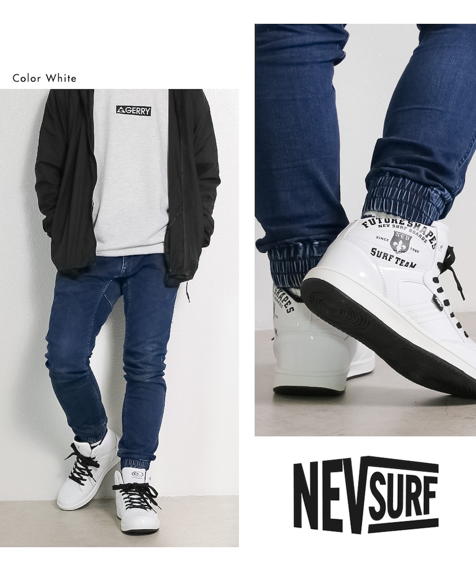 スニーカー メンズ 靴 ハイカット 白 黒 ホワイト ブラック 合皮 ハイカットスニーカー エナメル 軽量 軽い シンプル おしゃれ カジュアル シューズ 男性用 紳士靴 NEV SURF ネブサーフ 562