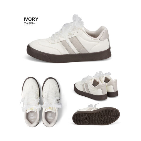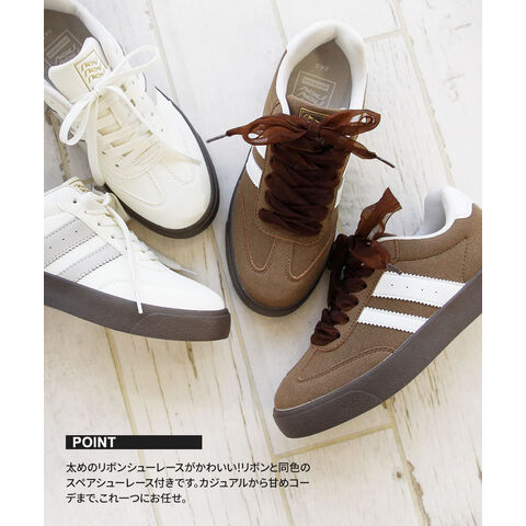 ネヴ スニーカー レディース ローカット リボン シューレース クッションインソール カジュアル 靴 ジュニア 白 ホワイト ブラウン 689 nev
