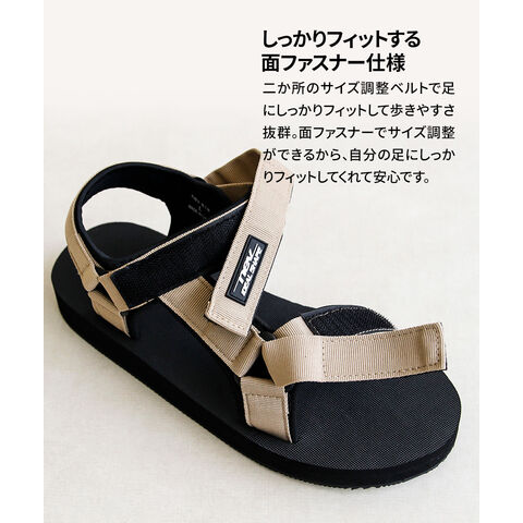 二か所のサイズ調整ベルトで足にしっかりフィットして歩きやすさ抜群。