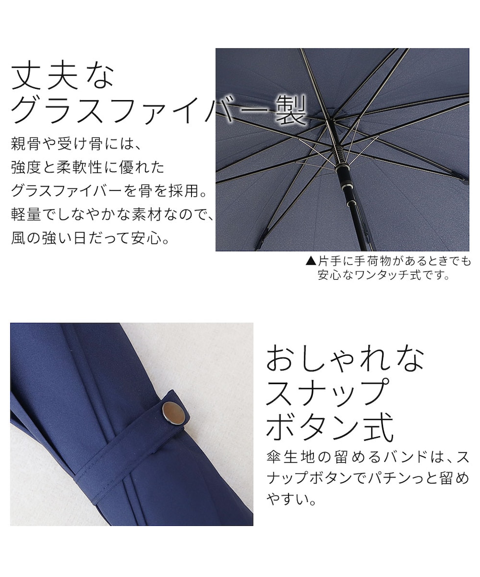 親骨の長さは70cmと大きいサイズで、しっかりとしたカバー力を提供します。
