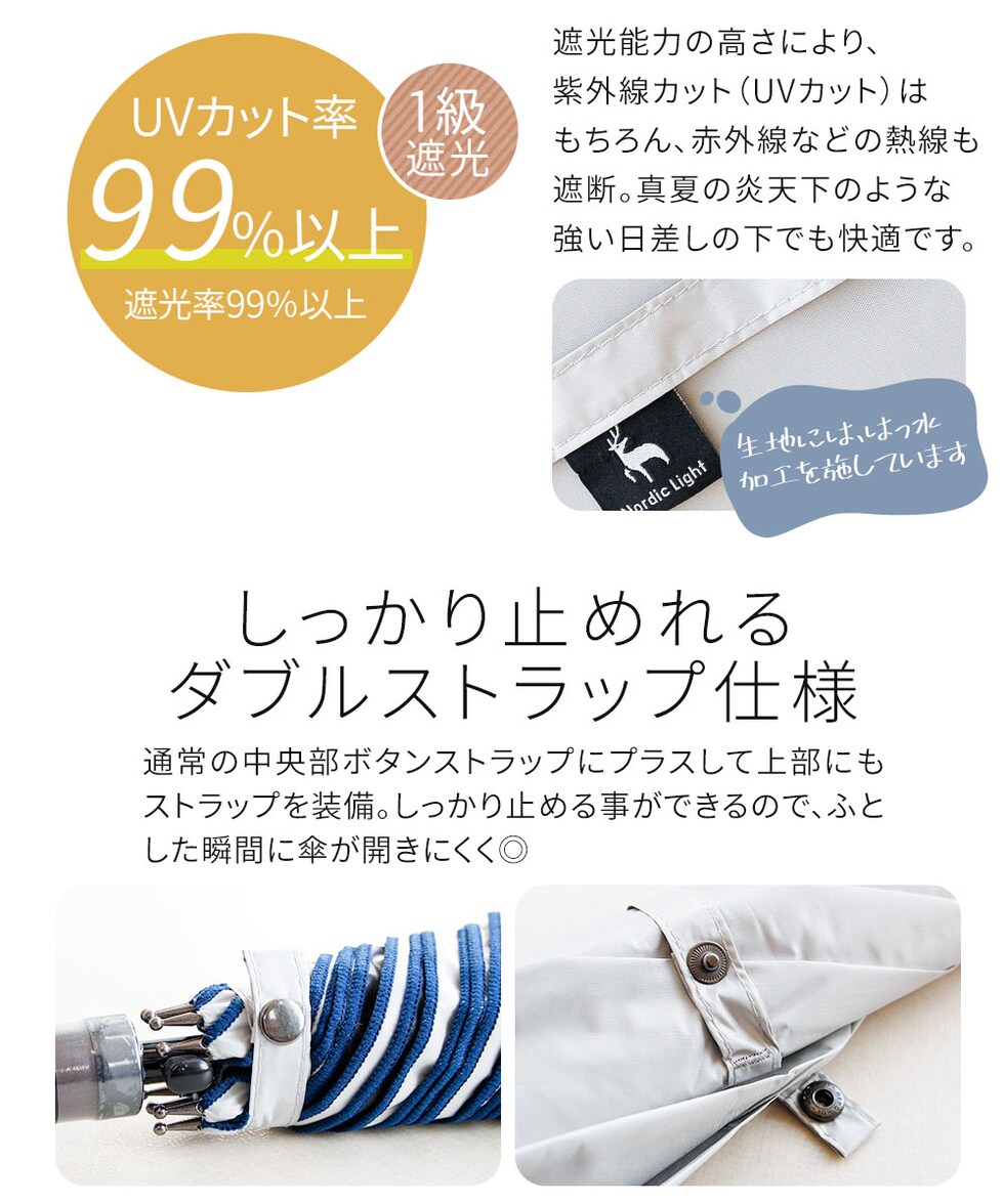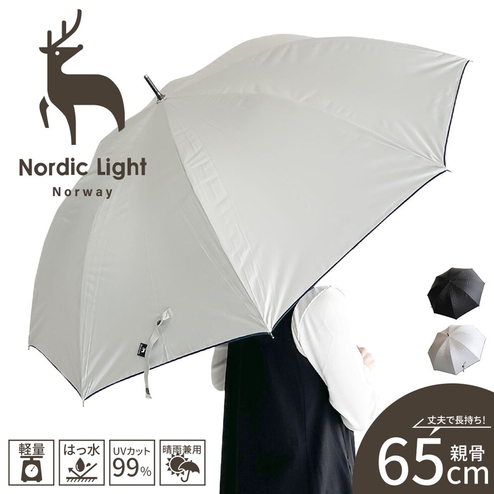 ノルディックライト 長傘 雨具 軽量 遮光 UV 大判 晴雨兼用 日焼け 紫外線 シンプル ブラック 65cm Nordic Light 320034