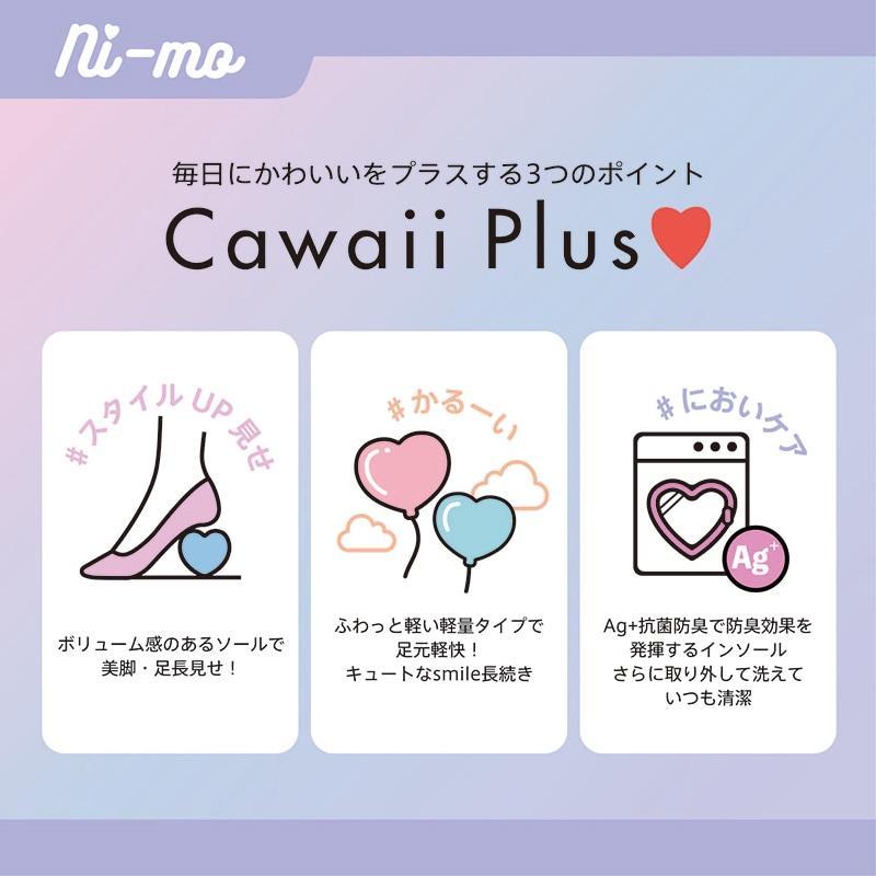 Cawaii Plusとしては#スタイルアップ見せ #かるーい #においケアを備え、女の子のかわいくなりたい気持ちを応援します。