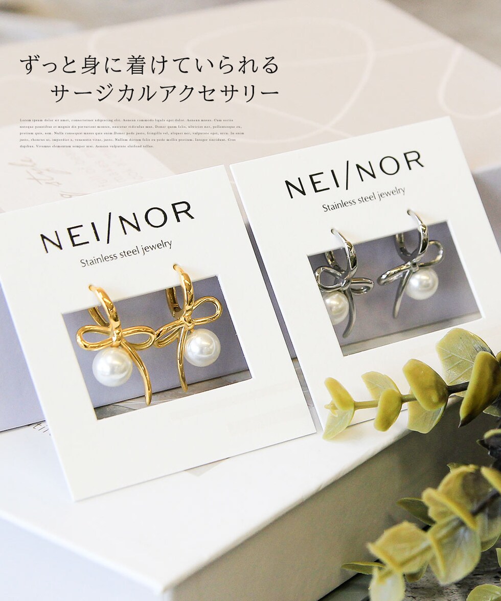 Nei/nor ピアス お肌に優しい つけっぱなしok サージカルステンレス 316L ジェンダーレス ファッション アクセサリー 錆に強い 変色しにくい スキンジュエリー 贈り物 プレゼント ゴールド シルバー ネイナー NnP-0107